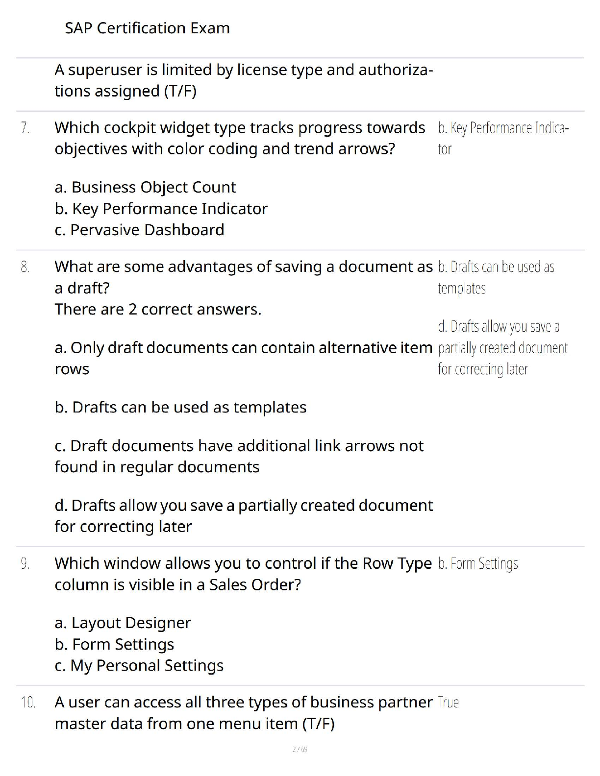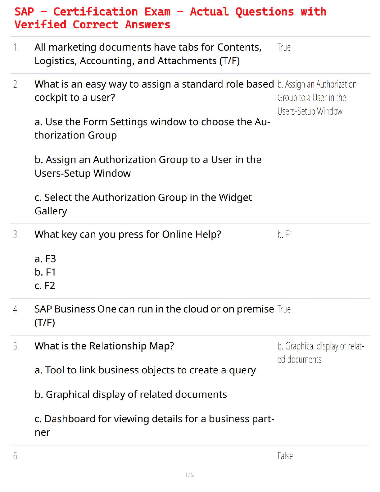 Unlock your career potential by acing the SAP Business One Certification Exam on your first try! This comprehensive test bank is your ultimate study guide, featuring a massive collection of actual exam questions meticulously compiled with 100% correct and verified answers. Familiarize yourself with the real exam format, identify key topics, and build the confidence you need to succeed. Our resource covers essential concepts like marketing documents, user authorizations, relationship maps, and core SAP Business One functionalities. Download now and get on the fast track to becoming a certified SAP Business One professional!