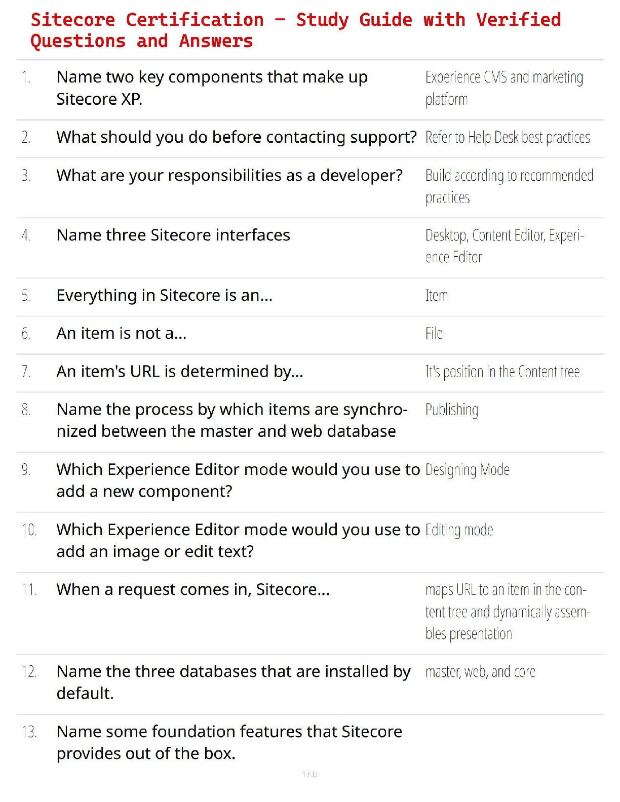 Ace your Sitecore XP Developer Certification on the first try with our comprehensive test bank! This expertly curated study guide is packed with the latest, verified questions and detailed answers that cover all essential exam topics. From understanding the core architecture of Sitecore XP, including its key databases and interfaces, to mastering the Experience Editor and publishing workflows, this resource is your ultimate key to success. Stop worrying about resits and start preparing with confidence. Download now to fast-track your journey to becoming a Sitecore Certified Developer!