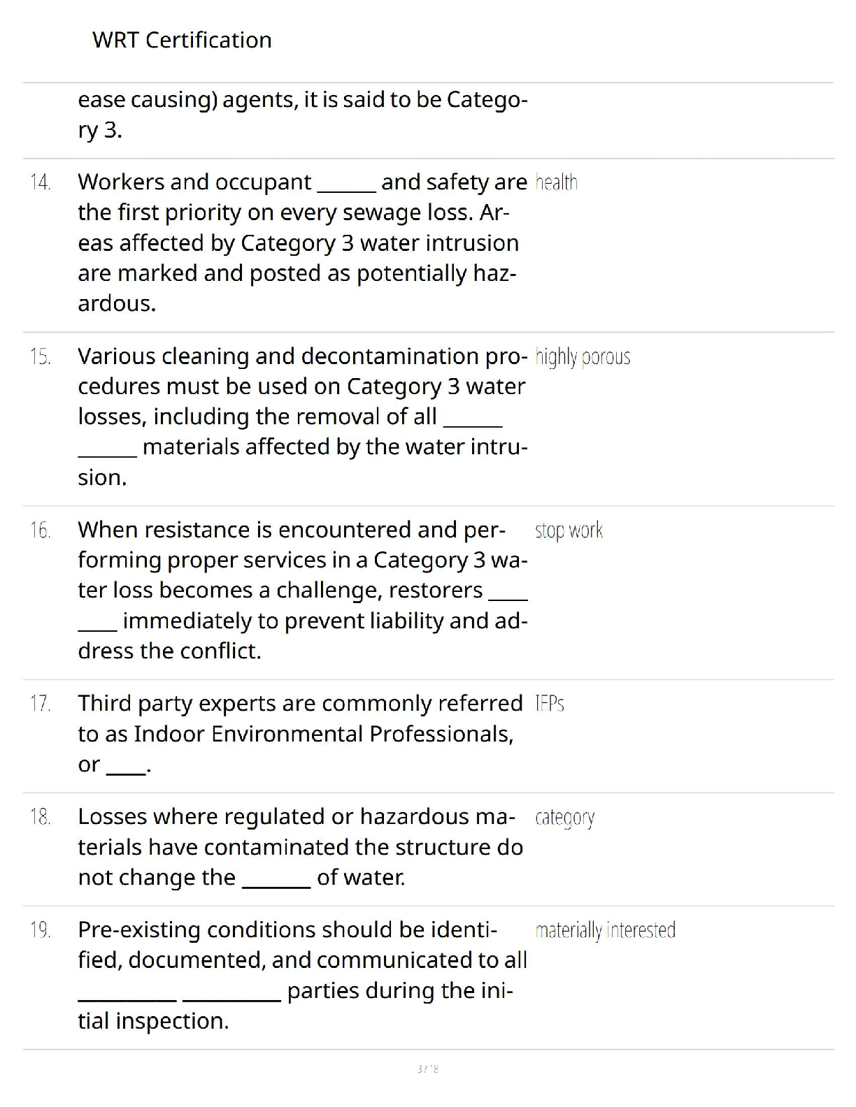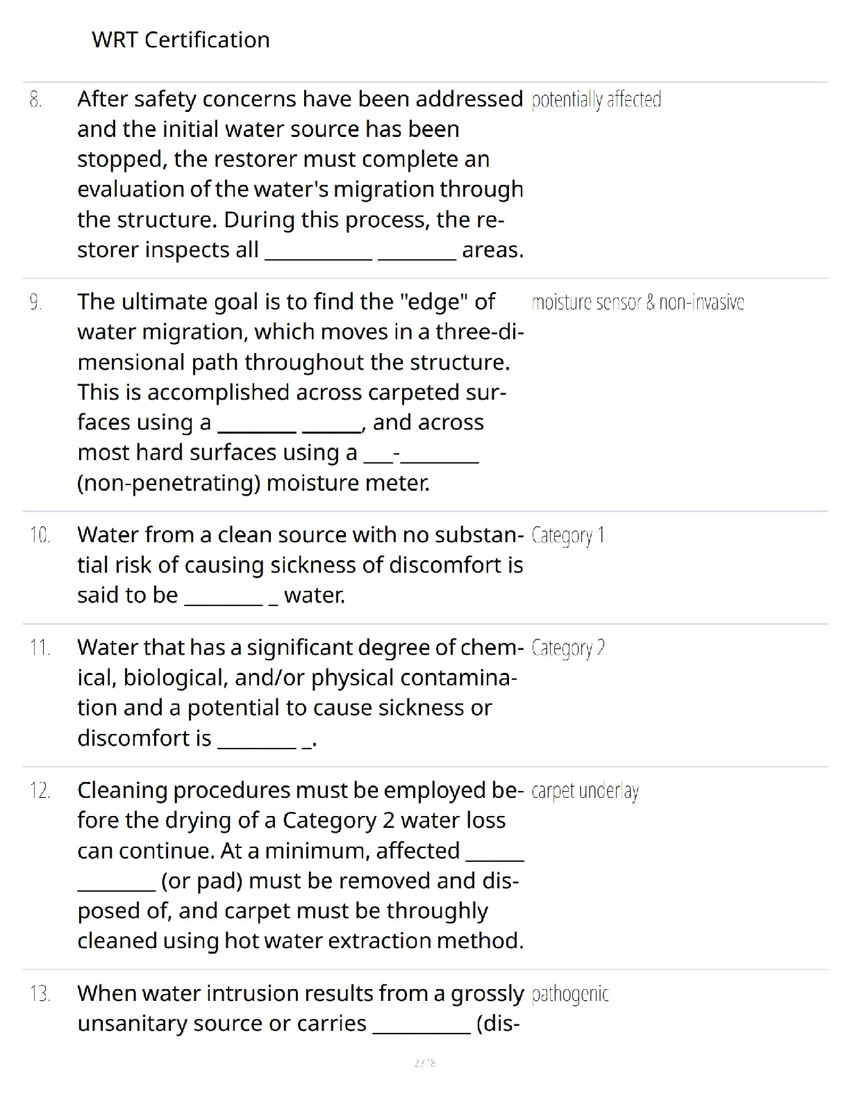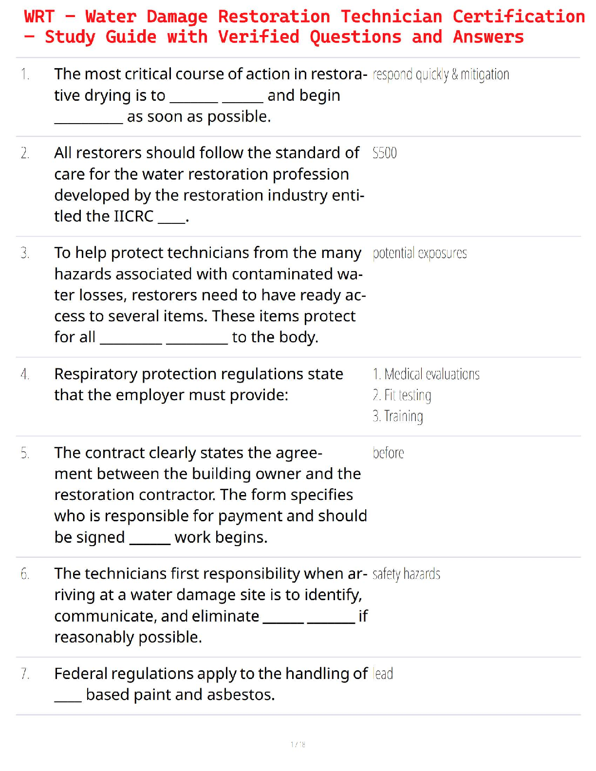 WRT Water Damage Restoration Technician Certification Exam Test Bank 2025/2026 | Study Guide with Verified Questions & Answers
