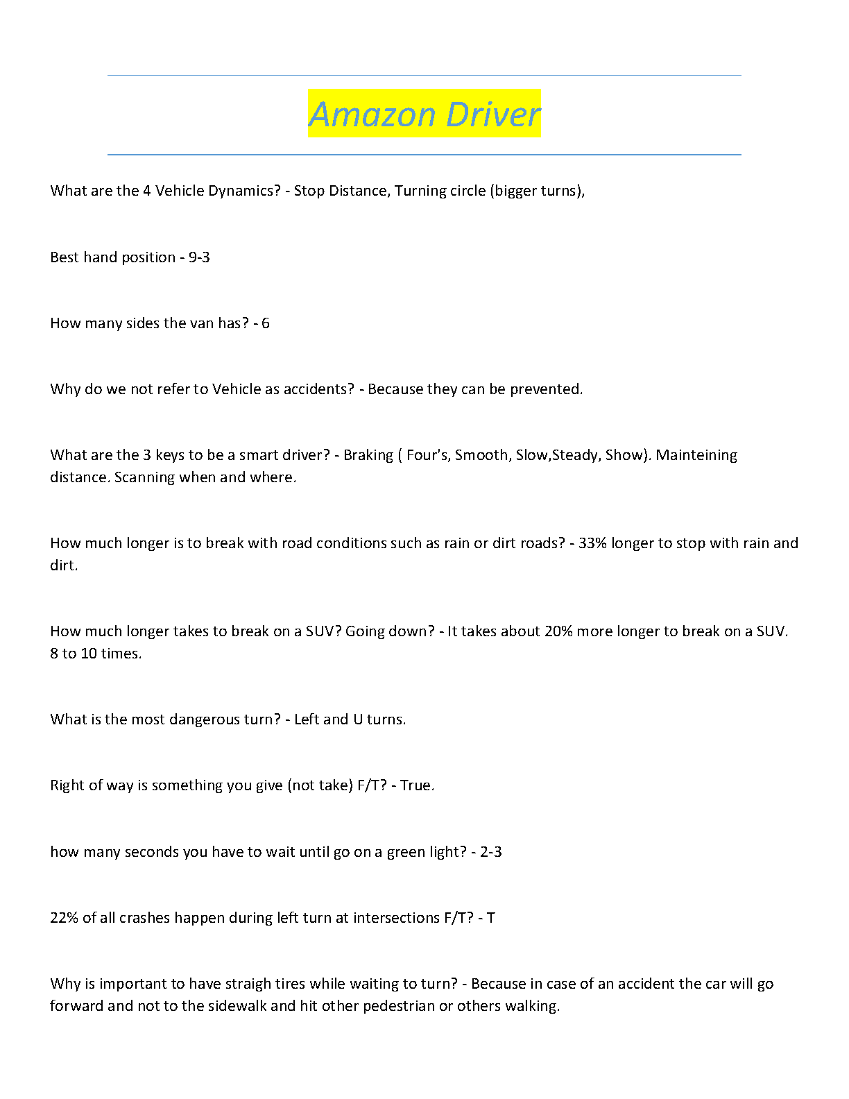 Amazon Driver Training Test Bank 2025/2026: Comprehensive Q&A Study Guide to Pass Your Assessment on the First Try