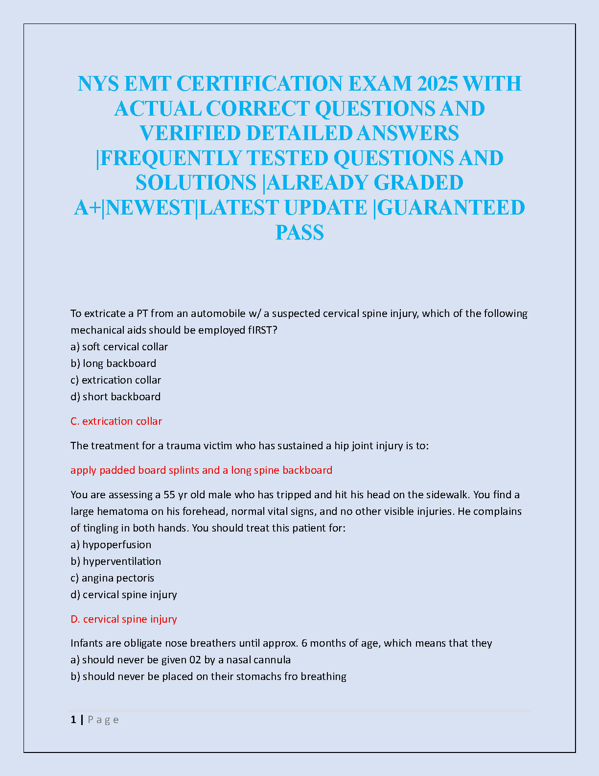 Ace your New York State (NYS) EMT Certification Exam with confidence using our latest 2025-2026 test bank! This comprehensive study guide is meticulously designed to help you pass on your very first attempt. Inside, you'll find a collection of actual, frequently tested exam questions, each accompanied by detailed, verified answers and solutions. Our A+ graded material covers all critical EMT topics, ensuring you are fully prepared for any scenario the real exam throws at you. Don't leave your certification to chance—study with the most up-to-date resource and guarantee your success.