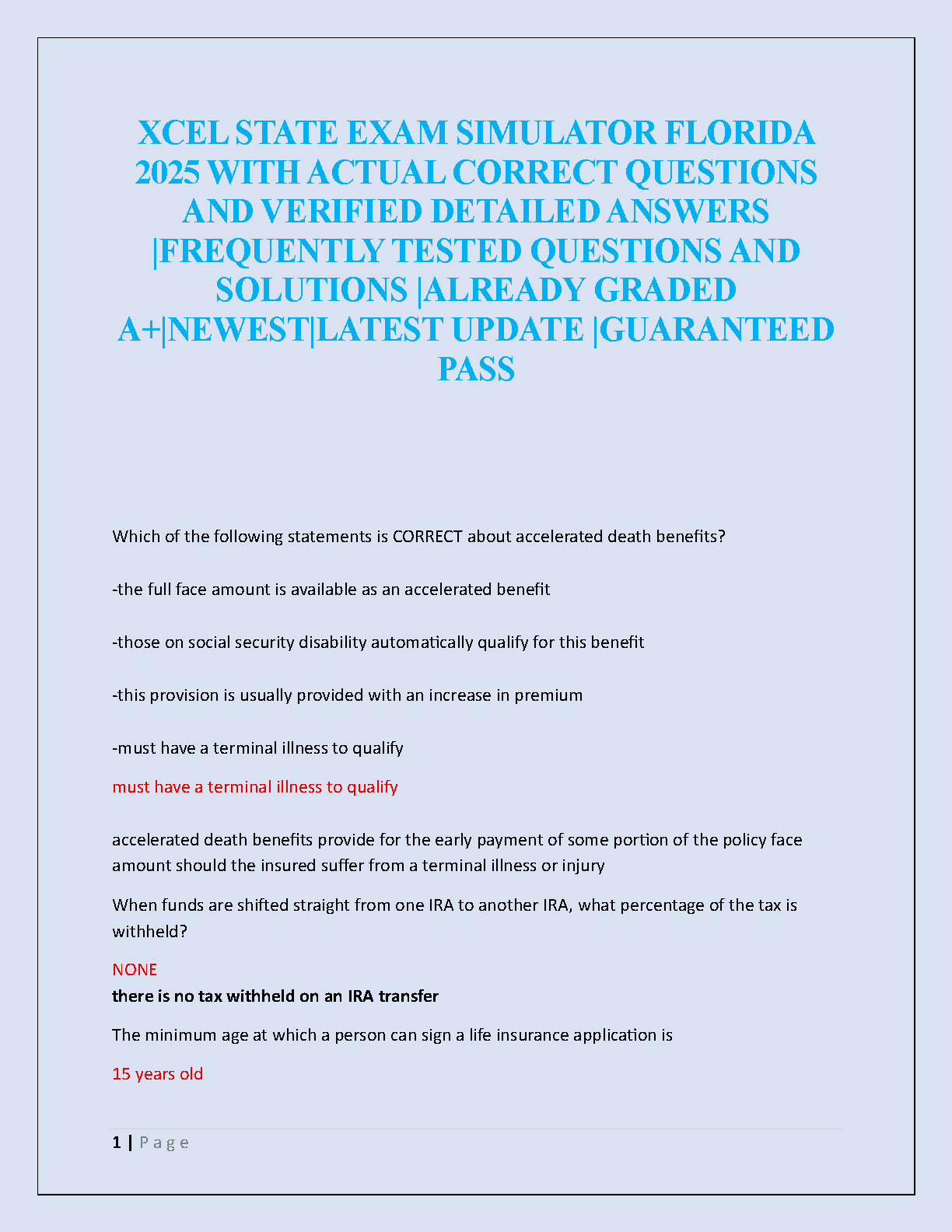 Pass Your Florida State Exam in 2025 with the XCEL Simulator Test Bank | A+ Graded Questions & Detailed Solutions