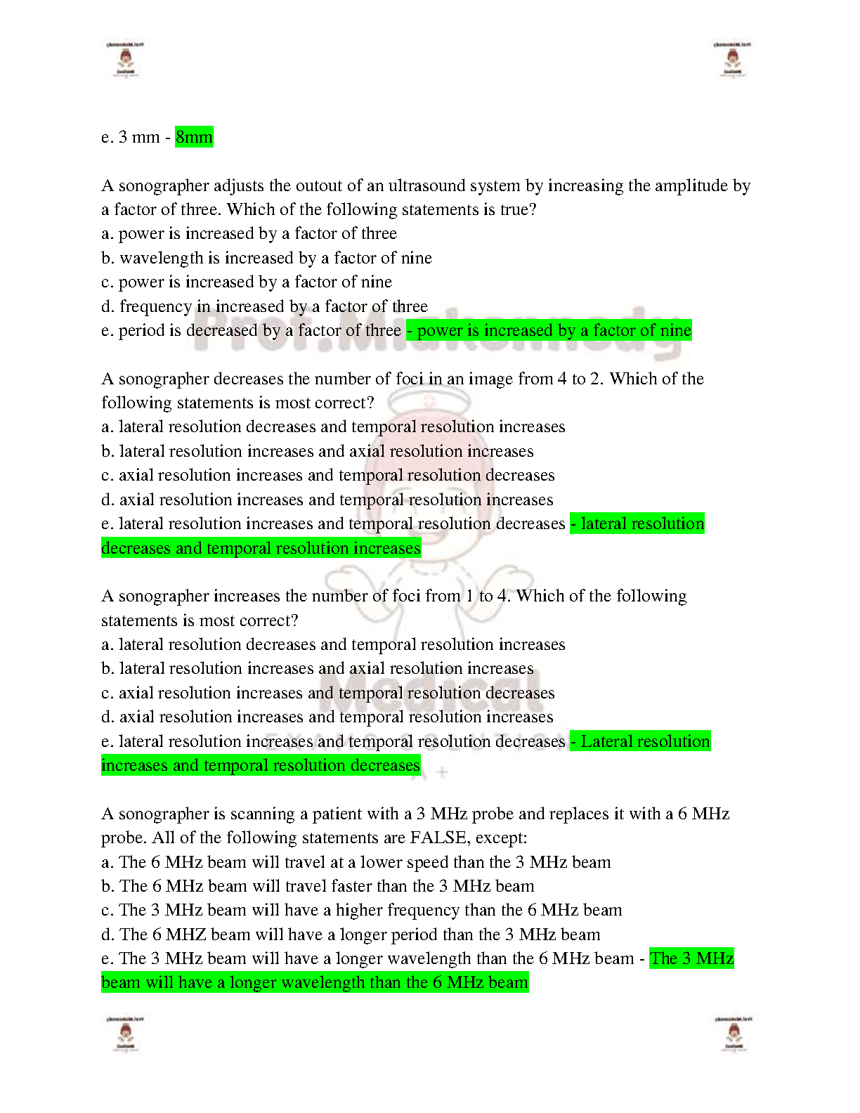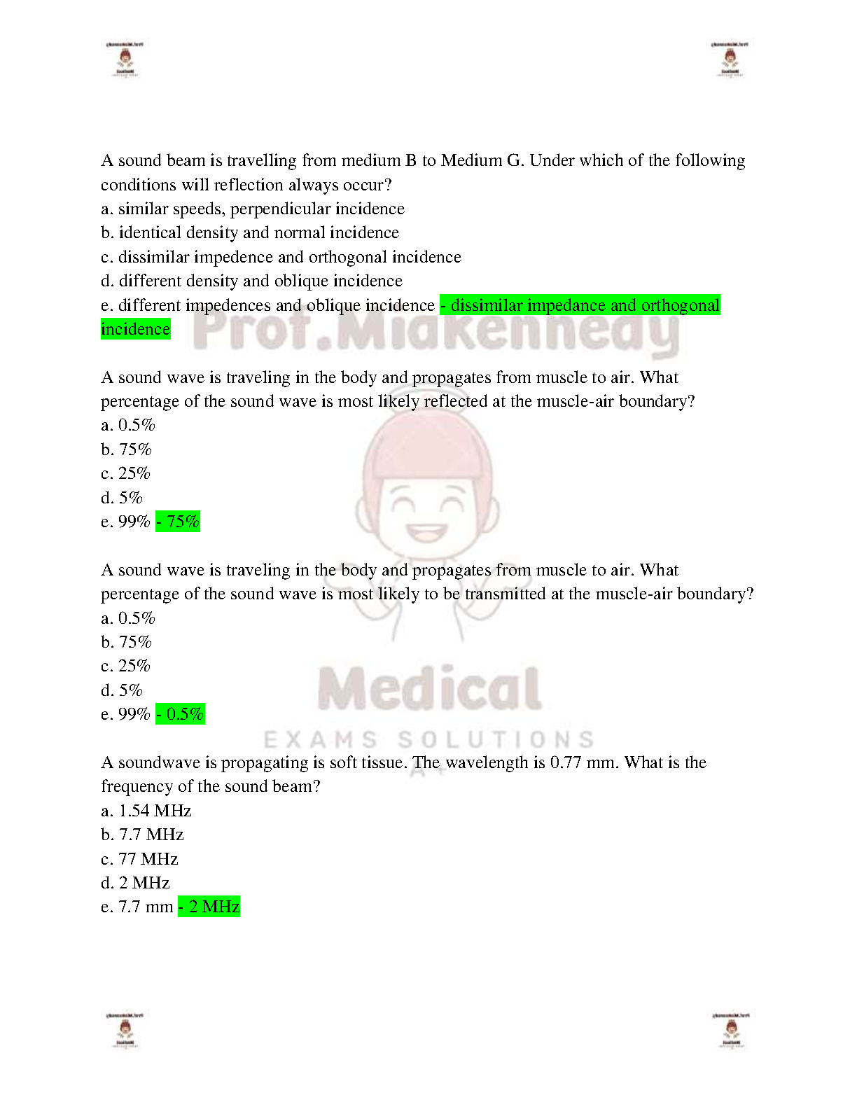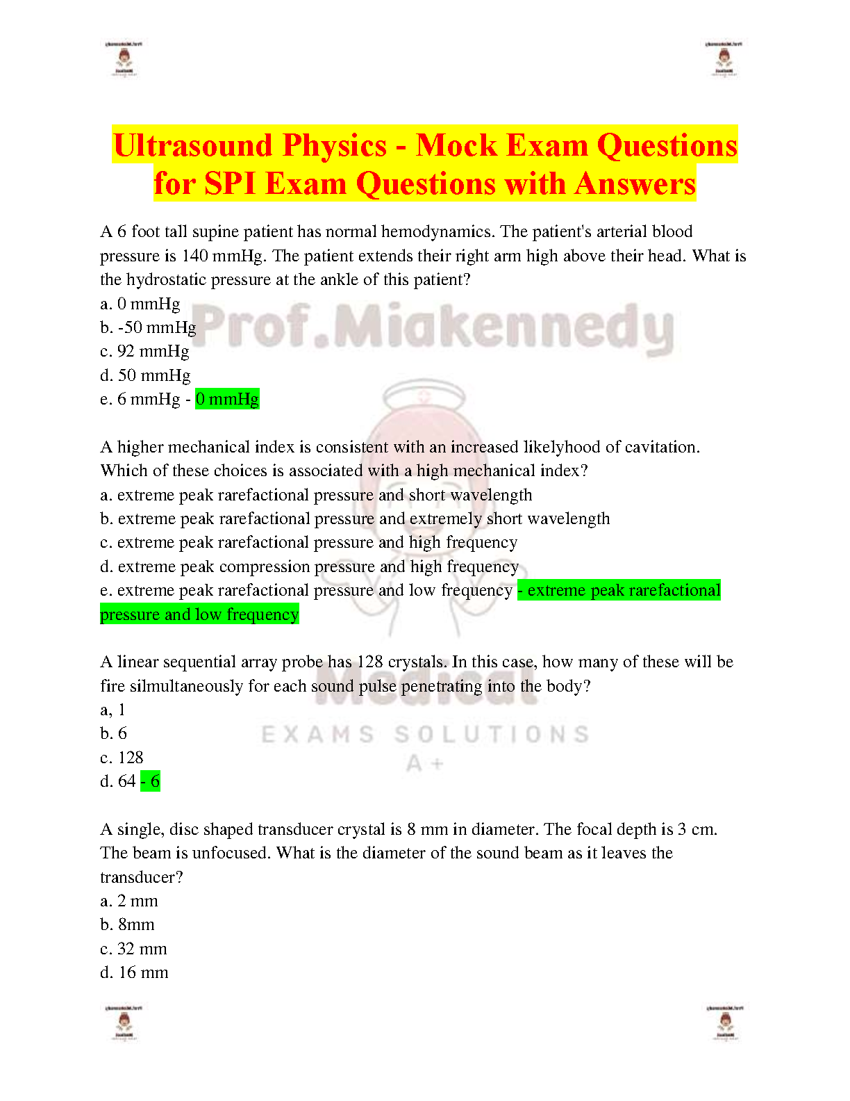 Ace your Sonography Principles and Instrumentation (SPI) boards with this comprehensive test bank for 'Ultrasound Physics and Instrumentation, 5th Edition' by Sidney K. Edelman. This essential study resource features an extensive collection of mock exam questions, each accompanied by a verified, correct answer. Dive deep into crucial topics like hemodynamics, mechanical index, transducer technology, and beam physics. Our meticulously crafted questions mirror the format and difficulty of the actual SPI exam, providing you with the perfect tool to test your knowledge, identify weak areas, and build confidence. Get the A+ grade you deserve and pass your SPI exam on the first try with our expertly prepared materials.