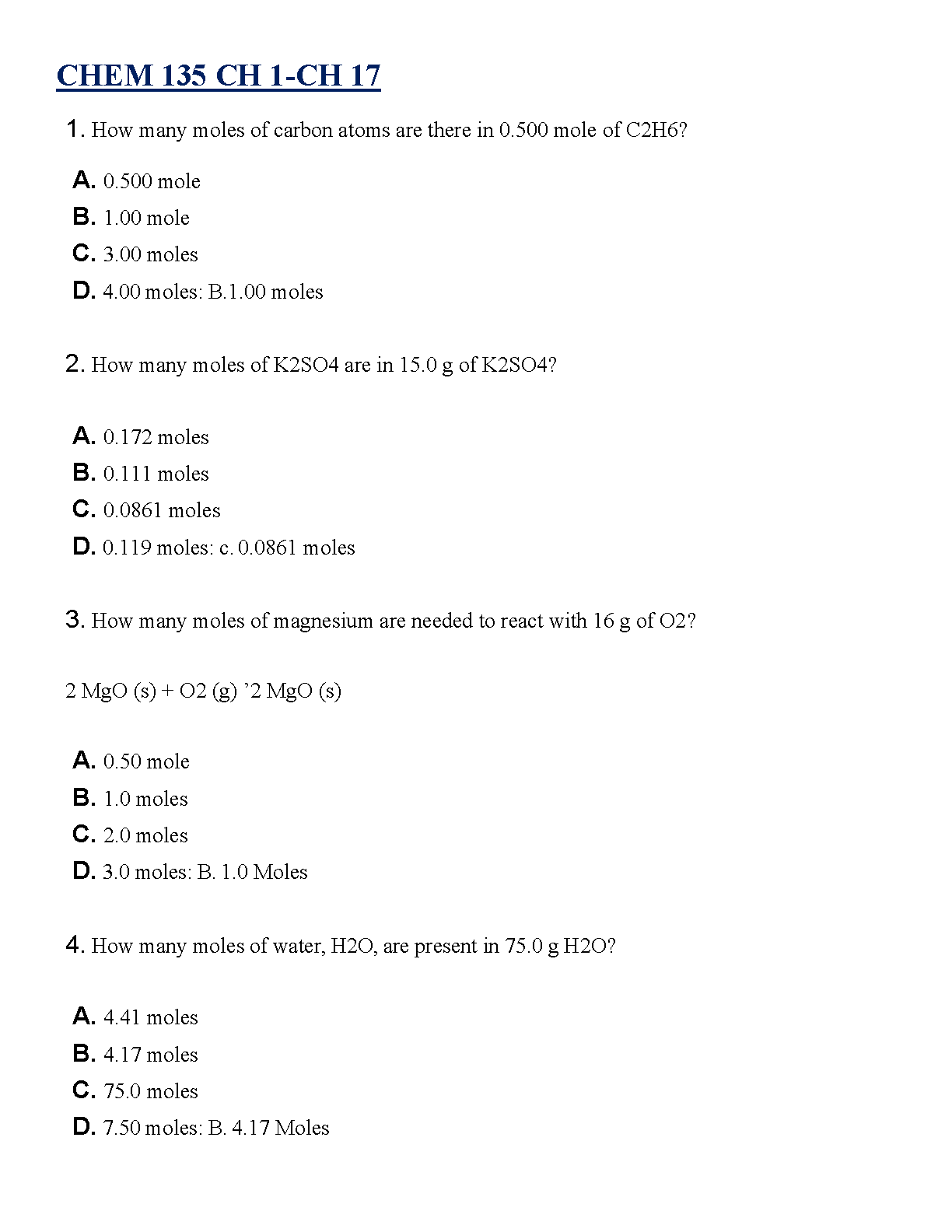 CHEM 135 General Chemistry Test Bank (Chapters 1-17) | Based on Brown, LeMay & Bursten's Chemistry: The Central Science, 15th Edition