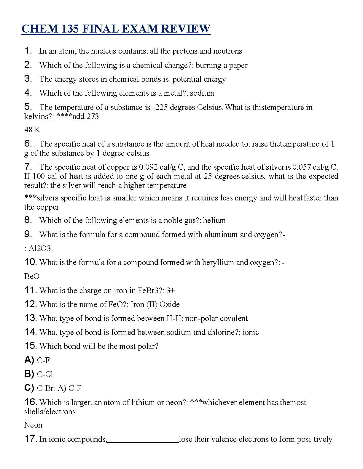 CHEM 135 Final Exam Review - Comprehensive Q&A Study Guide for 2025/2026 | Master Key Concepts and Pass on Your First Attempt