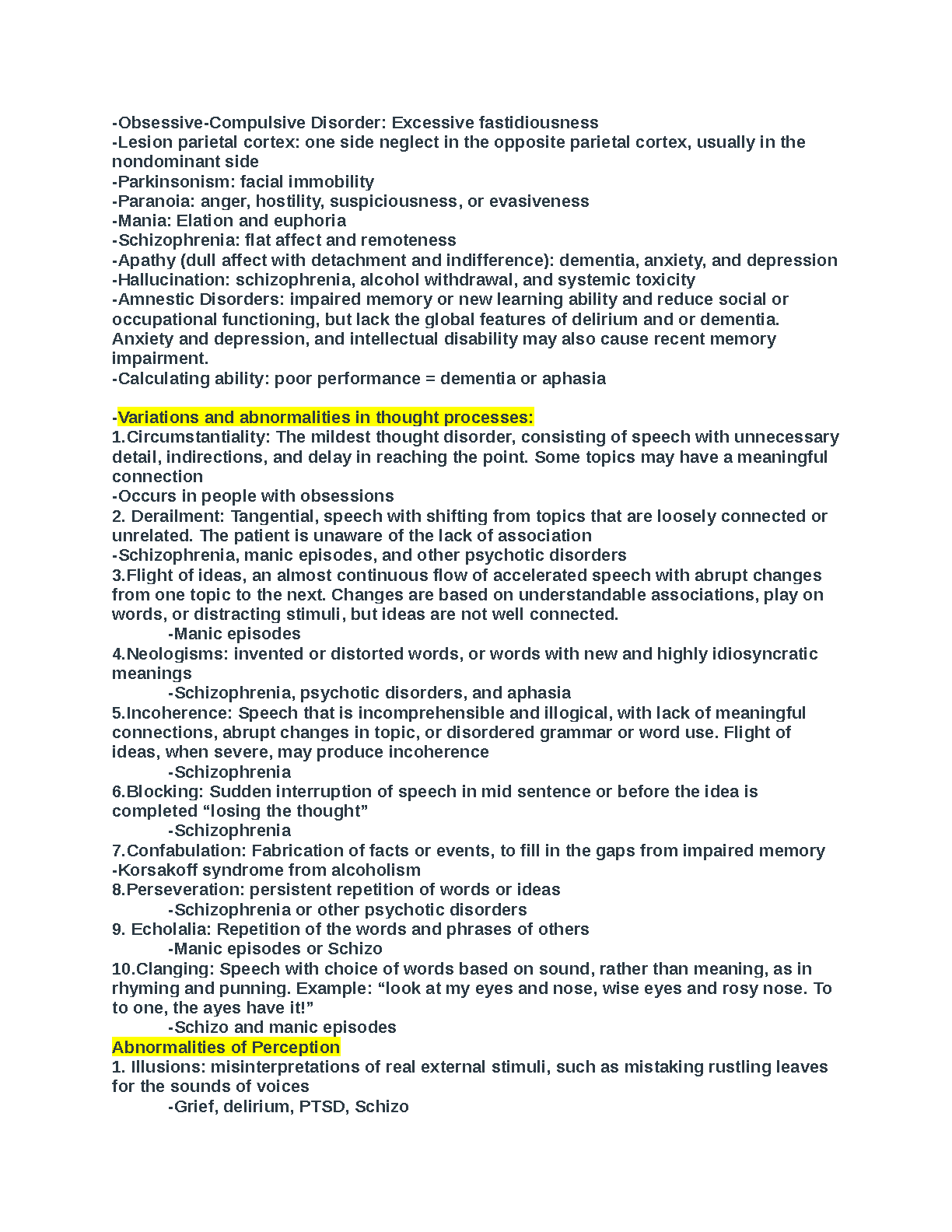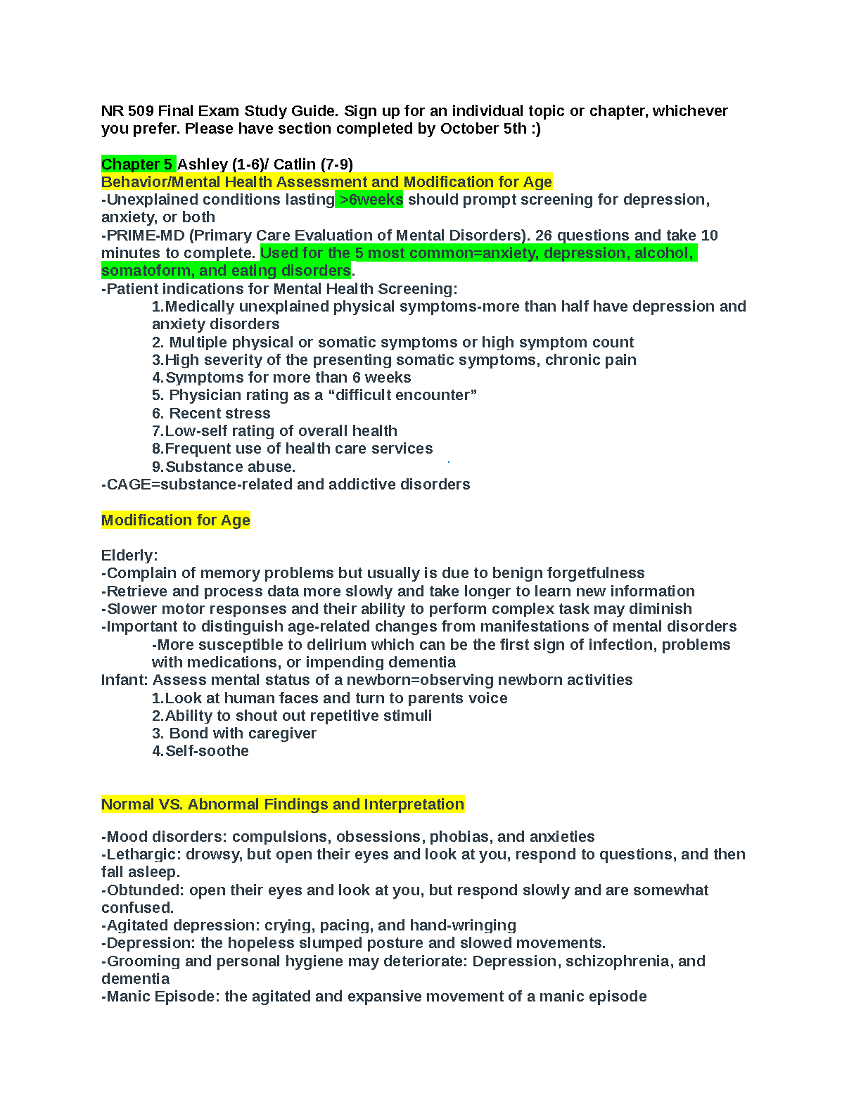 NR 509 Final Exam Study Guide 2025/2026: Comprehensive Notes on Chapter 5 - Behavior and Mental Health Assessment