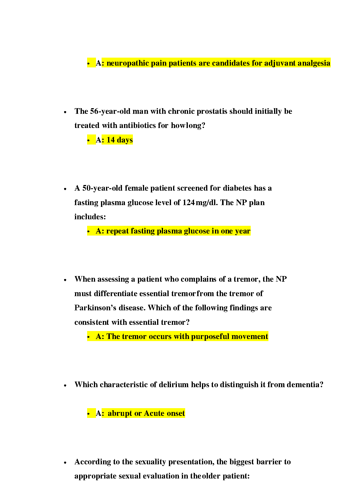 Ace your NR 601 Final Exam with this comprehensive test bank from Chamberlain College of Nursing. This essential study resource includes two complete and updated 2023 versions of the final exam, featuring 100% correct and verified questions and answers. Covering all key topics in 'Primary Care of the Maturing and Aged Family,' this guide is expertly designed to help you master the material, boost your confidence, and pass your exam with top grades on your first attempt. Stop stressing and start studying smarter with this ultimate exam prep tool.