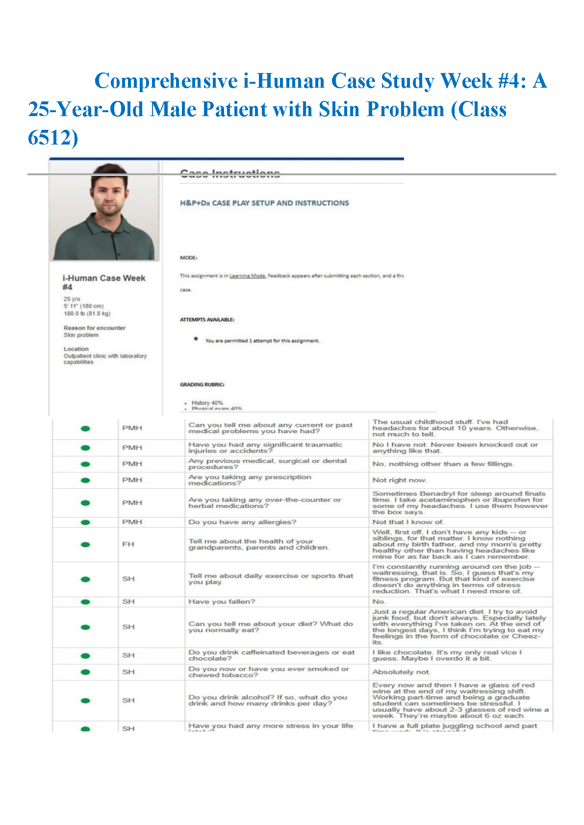 i-Human Case Study Week 4: 25-Year-Old Male Patient with Skin Problem | Latest 2025/2026 Graded A+ Solutions