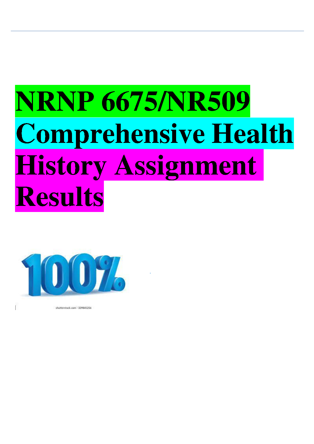 Ace your nursing coursework with our expertly crafted guide for the NRNP 6675/NR509 Comprehensive Health History Assignment. This resource showcases a 100% graded assignment, providing a perfect example of what instructors are looking for. Updated for the 2025/2026 academic year, this guide is your key to mastering advanced physical assessment and health history documentation. Use this proven template to structure your own work, ensure you cover all critical points, and secure a top grade on your first try.