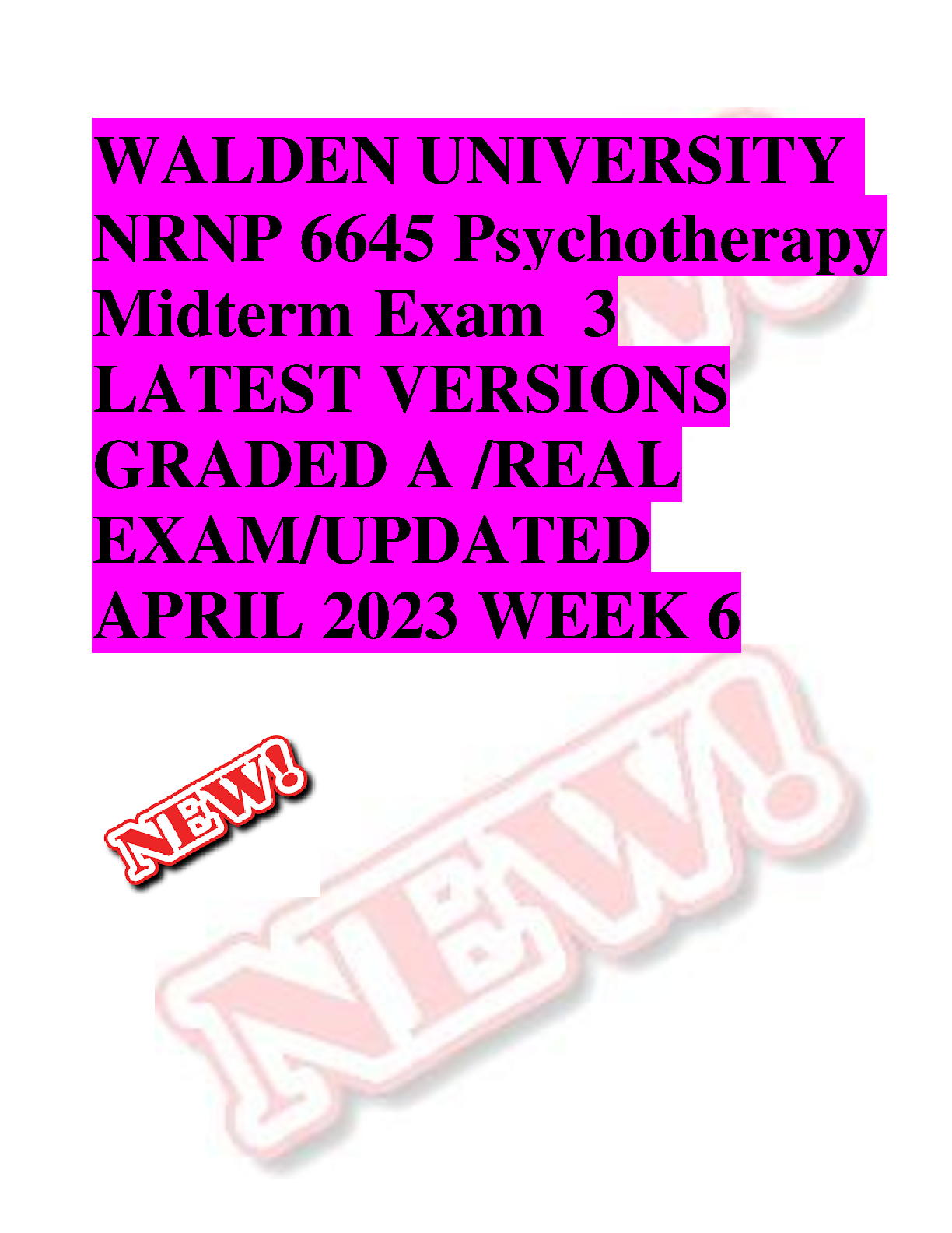 Walden University NRNP 6645 Psychotherapy Midterm Exam 3 Test Bank | Graded A Real Exam Questions & Answers (Updated 2023)