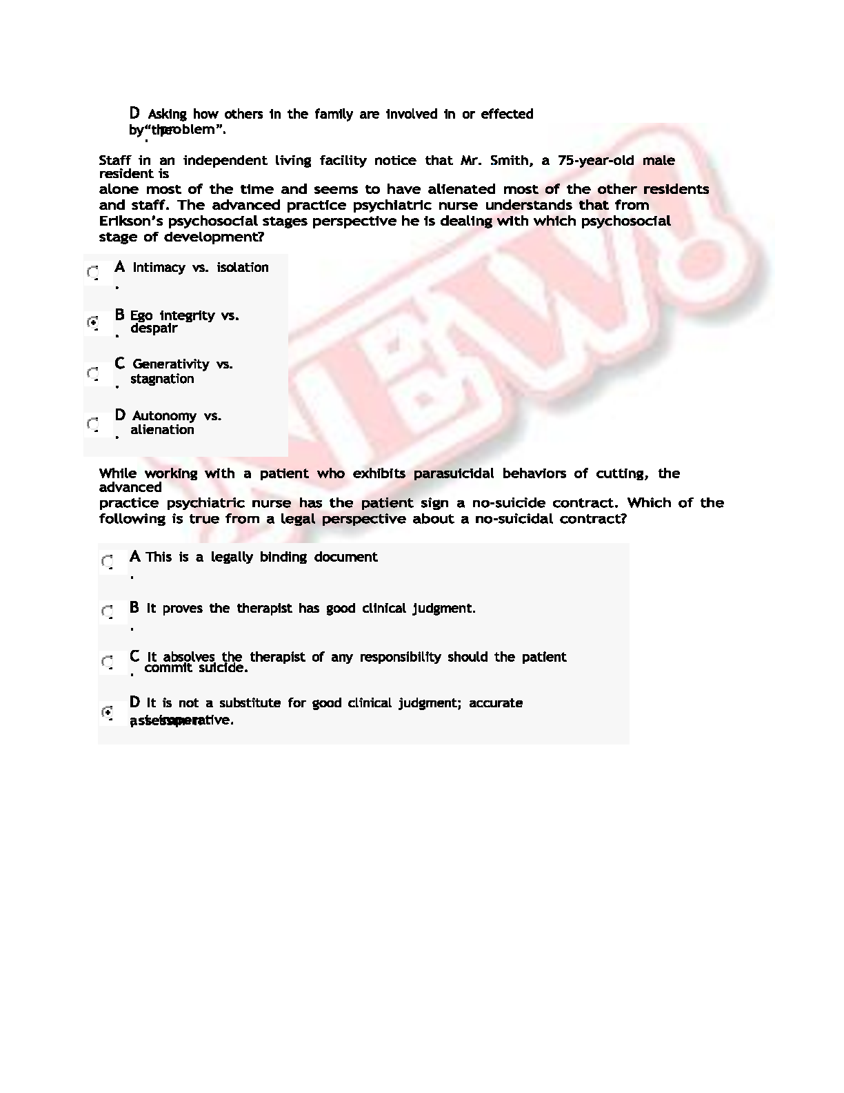 Prepare to excel in your Walden University NRNP 6645 Psychotherapy course with our premium Midterm Exam 3 Test Bank. This essential study guide features the latest, updated versions from April 2023 (Week 6), offering a compilation of real exam questions that have achieved an 'A' grade. Gain insight into the exam format and master key concepts to ensure you're fully prepared. This is your ultimate tool for boosting confidence and securing a top score on your midterm.