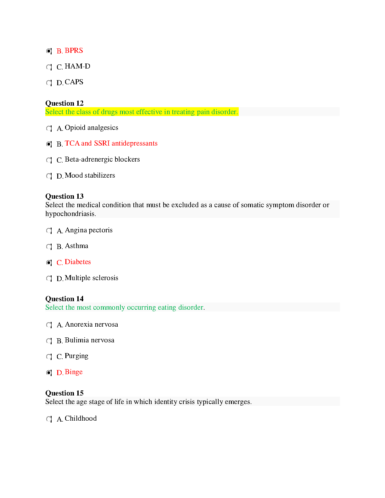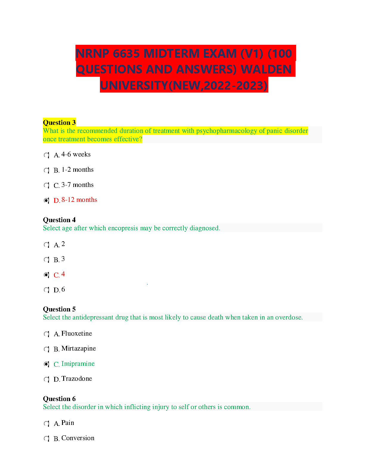 NRNP 6635 Midterm Exam Test Bank V1 (2023 Edition) - 100 Questions & Answers | Walden University Psychopathology