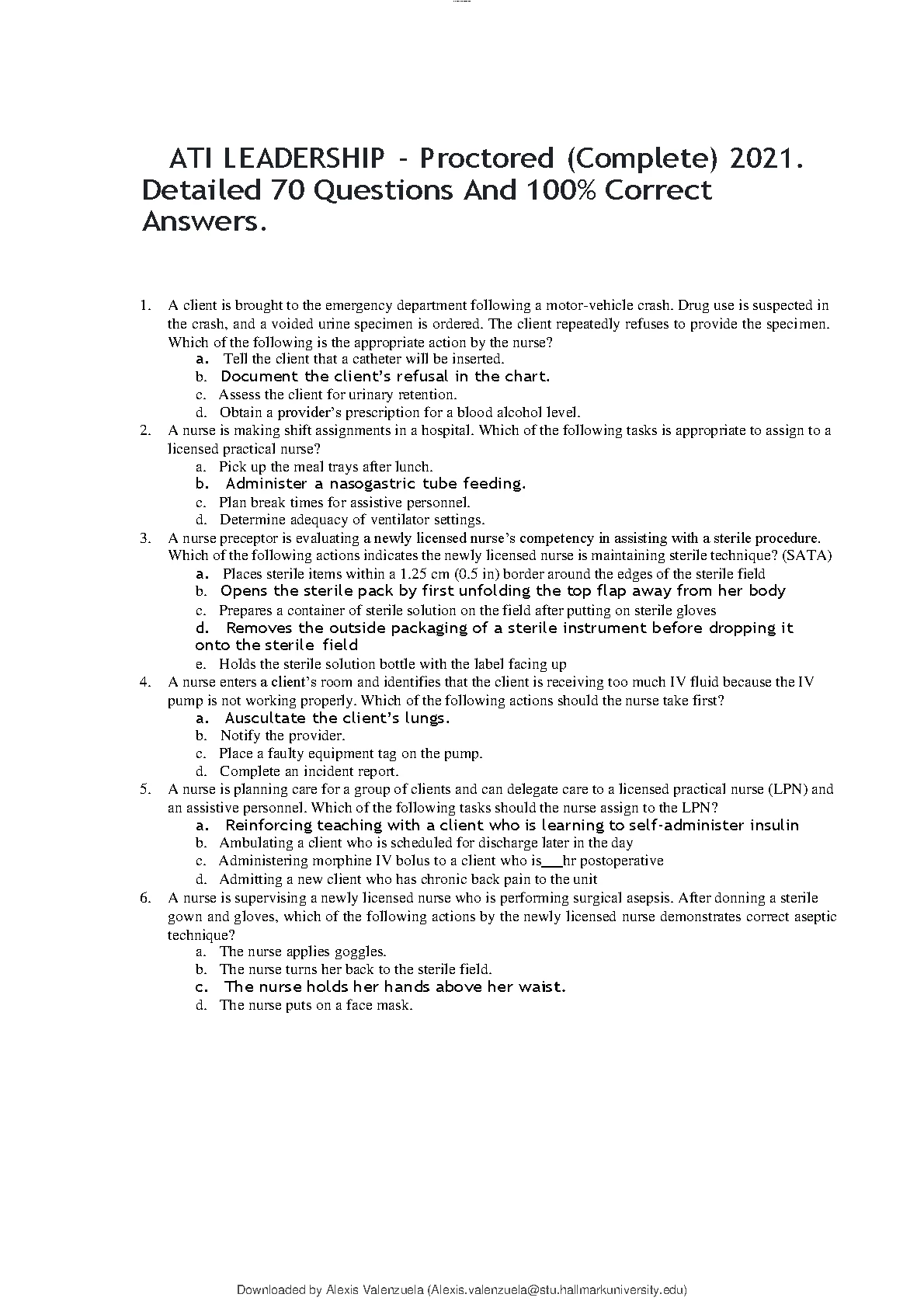 ATI LEADERSHIP Proctored (Complete). Detailed 70 Questions And 100% Correct Answers. BRAND NEW UPDATE
