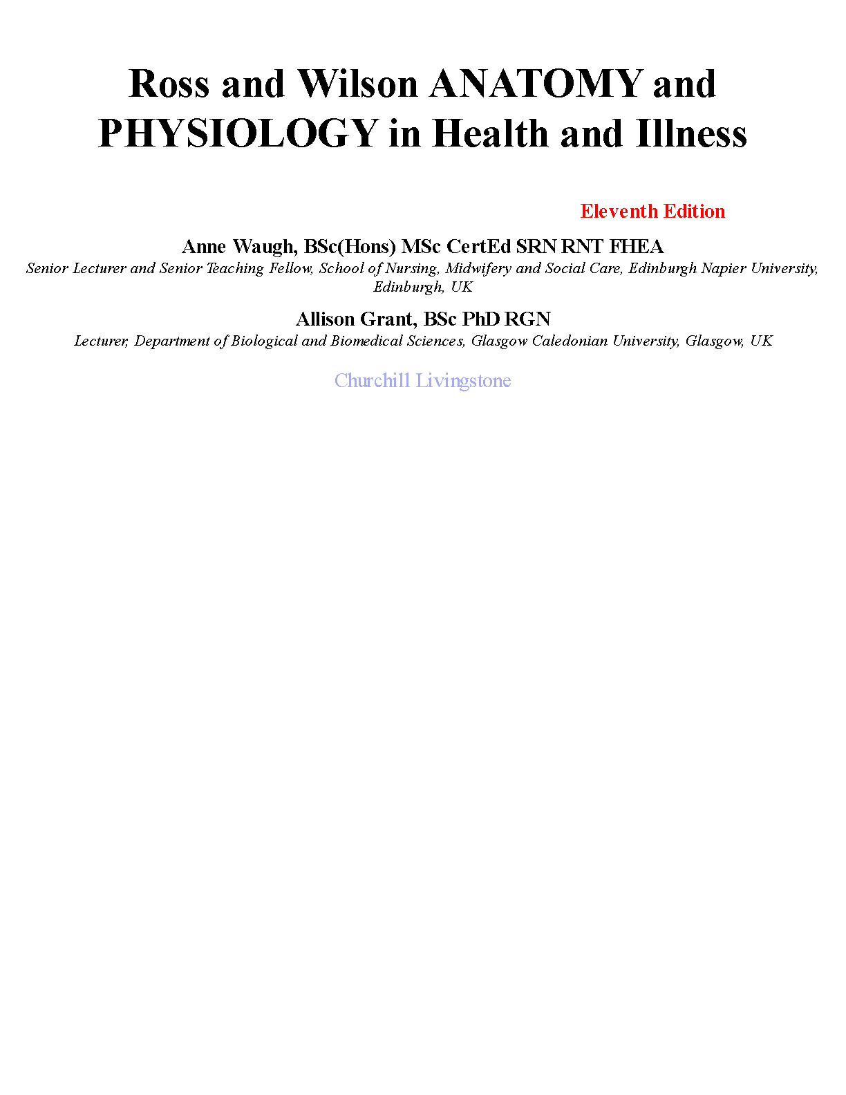 Master Anatomy & Physiology: Ross and Wilson in Health and Illness, 11th Edition by Anne Waugh & Allison Grant | 2025/2026 Exam Success Guide