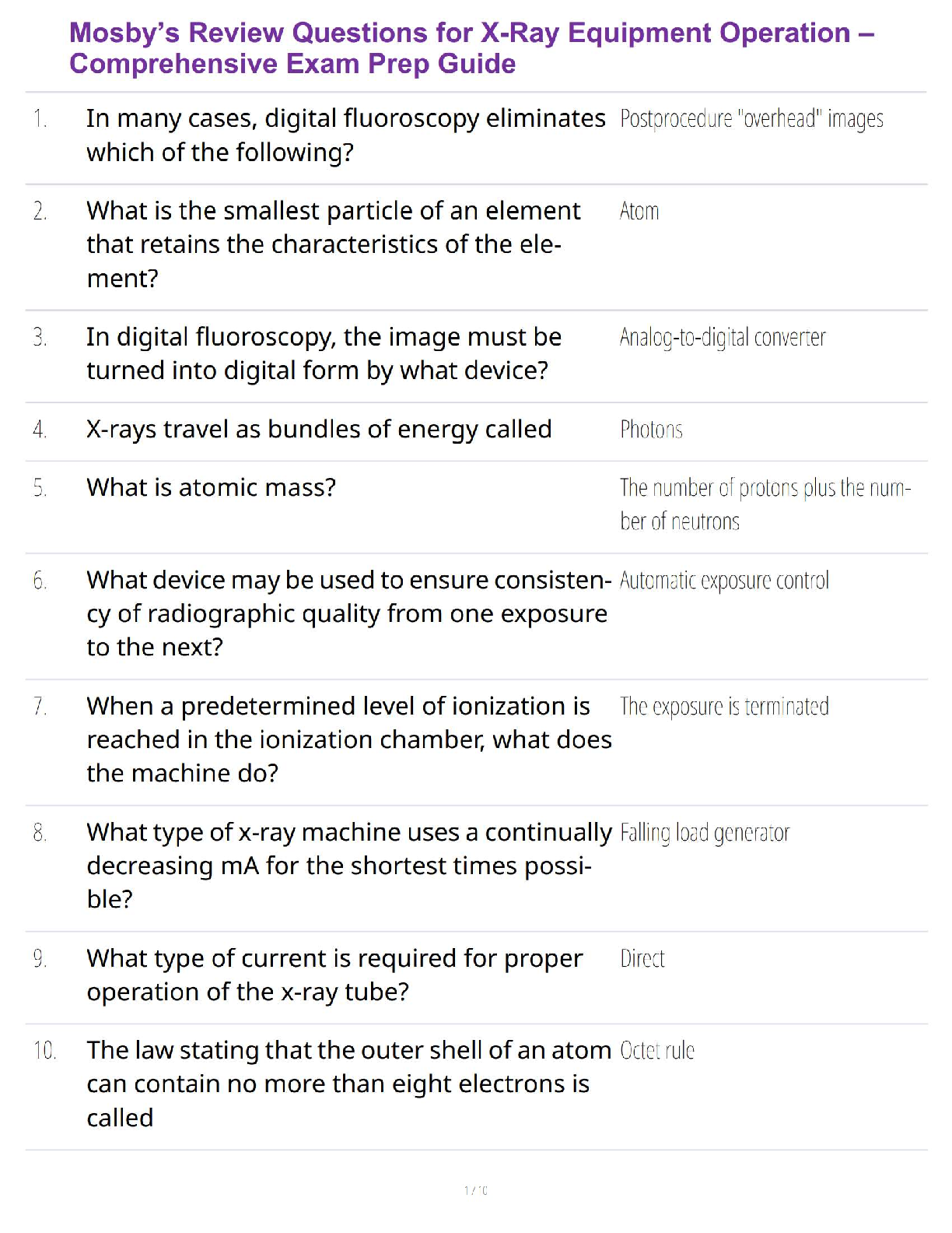 Unlock your full potential and master the field of radiography with this complete Test Bank for the 8th Edition of Mosby's Comprehensive Review of Radiography by Callaway and Rys. This invaluable digital resource is packed with hundreds of exam-style questions and verified answers, covering everything from fundamental X-ray equipment operation to advanced imaging principles. Designed to be your ultimate study partner, this guide helps you identify knowledge gaps, reinforce key concepts, and prepare effectively to pass your certification exams with confidence on your first try. Gain immediate access to the tools you need for academic and career success in radiography.