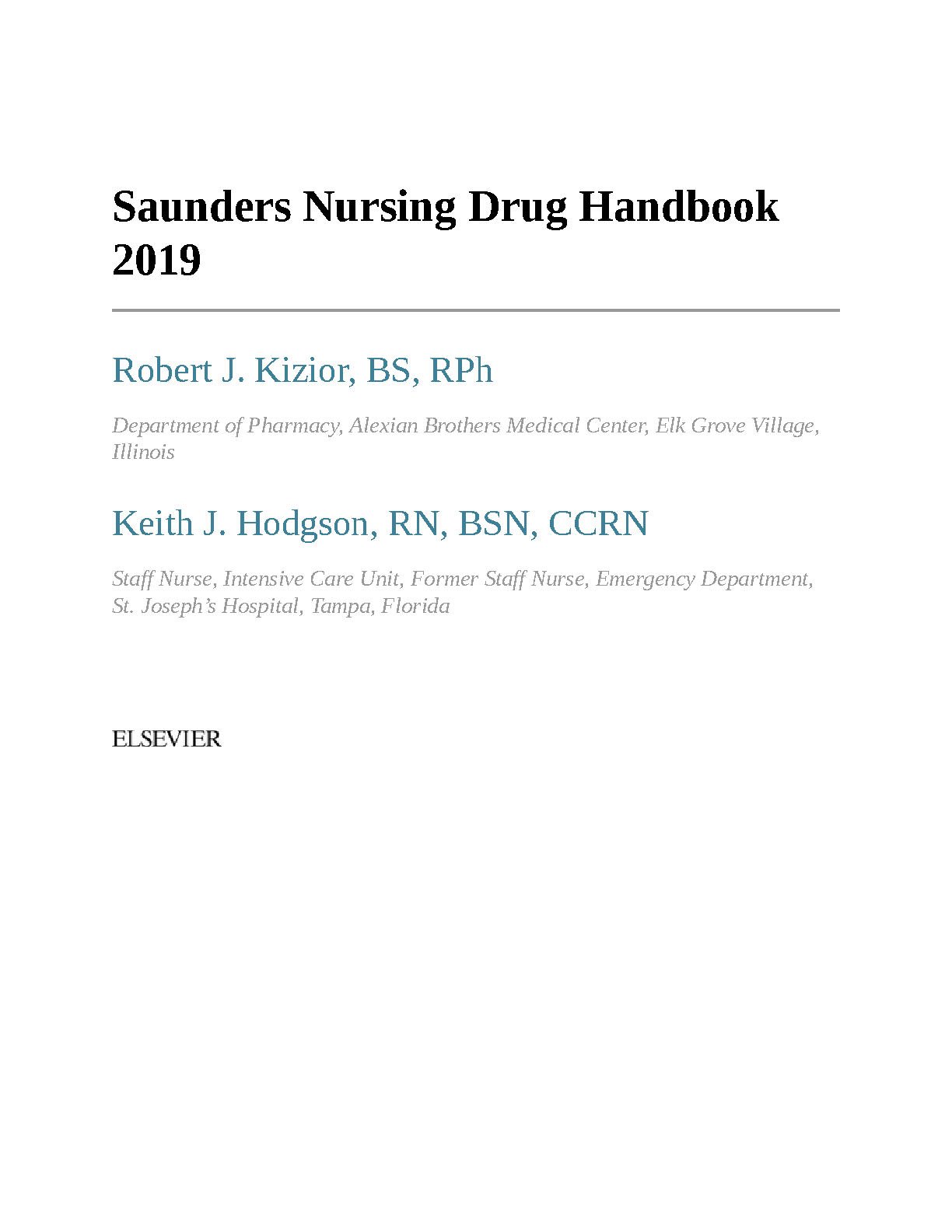 Saunders Nursing Drug Handbook 2019 by Robert J. Kizior & Barbara B. Hodgson | 2025/2026 Edition Study Guide to Pass Nursing Exams First Try