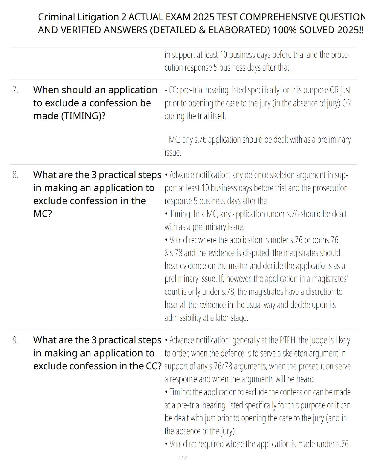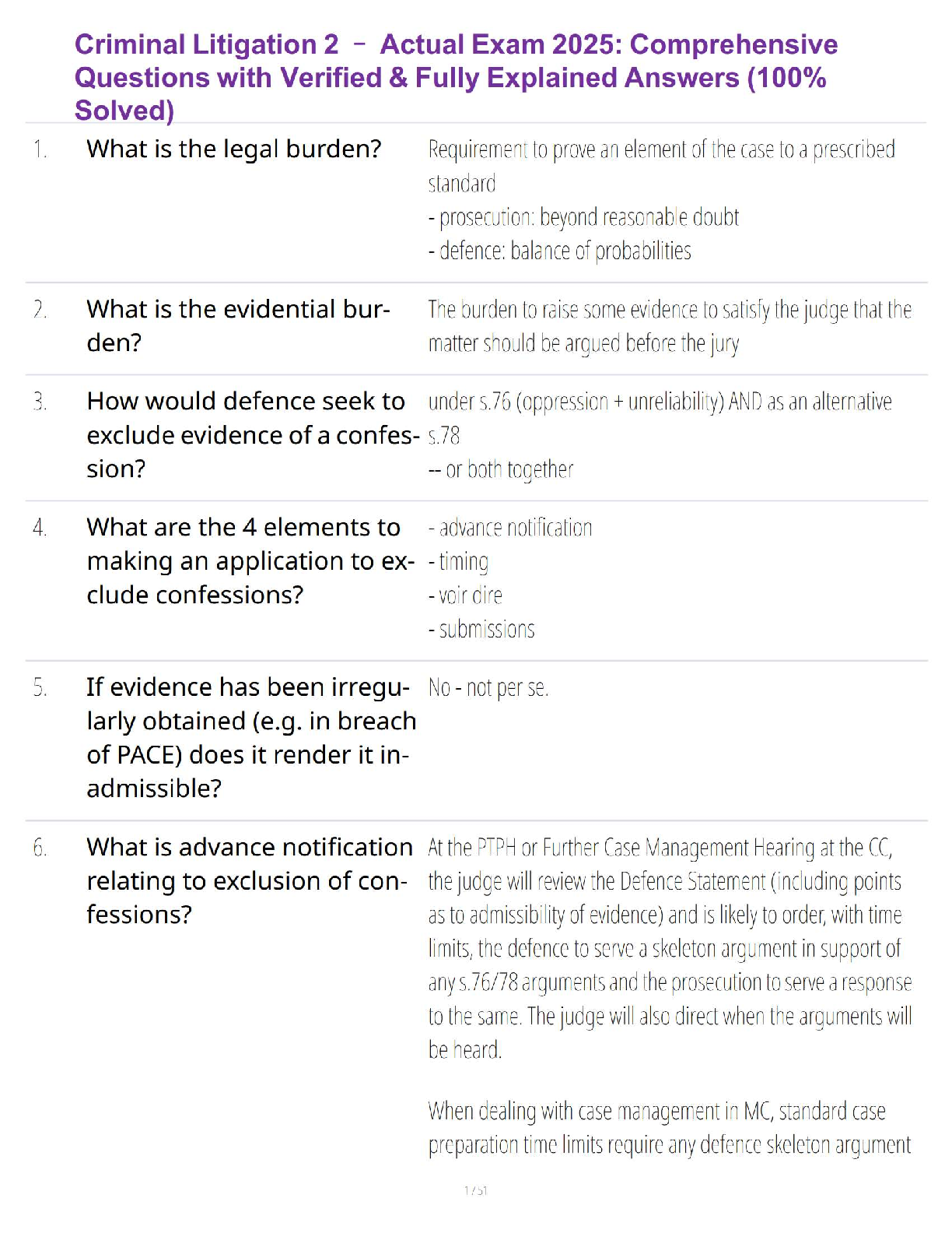 Ace your Criminal Litigation 2 exams with our ultimate study resource for the 2025/2026 academic year. This comprehensive guide features a complete set of actual exam questions with 100% correct, verified, and fully explained answers. Dive deep into crucial topics like legal and evidential burdens, procedures for excluding confessions under PACE, and case management. Designed to help you grasp complex legal concepts quickly, this guide is your key to passing on the first attempt and avoiding costly resits. Get the confidence you need to excel!