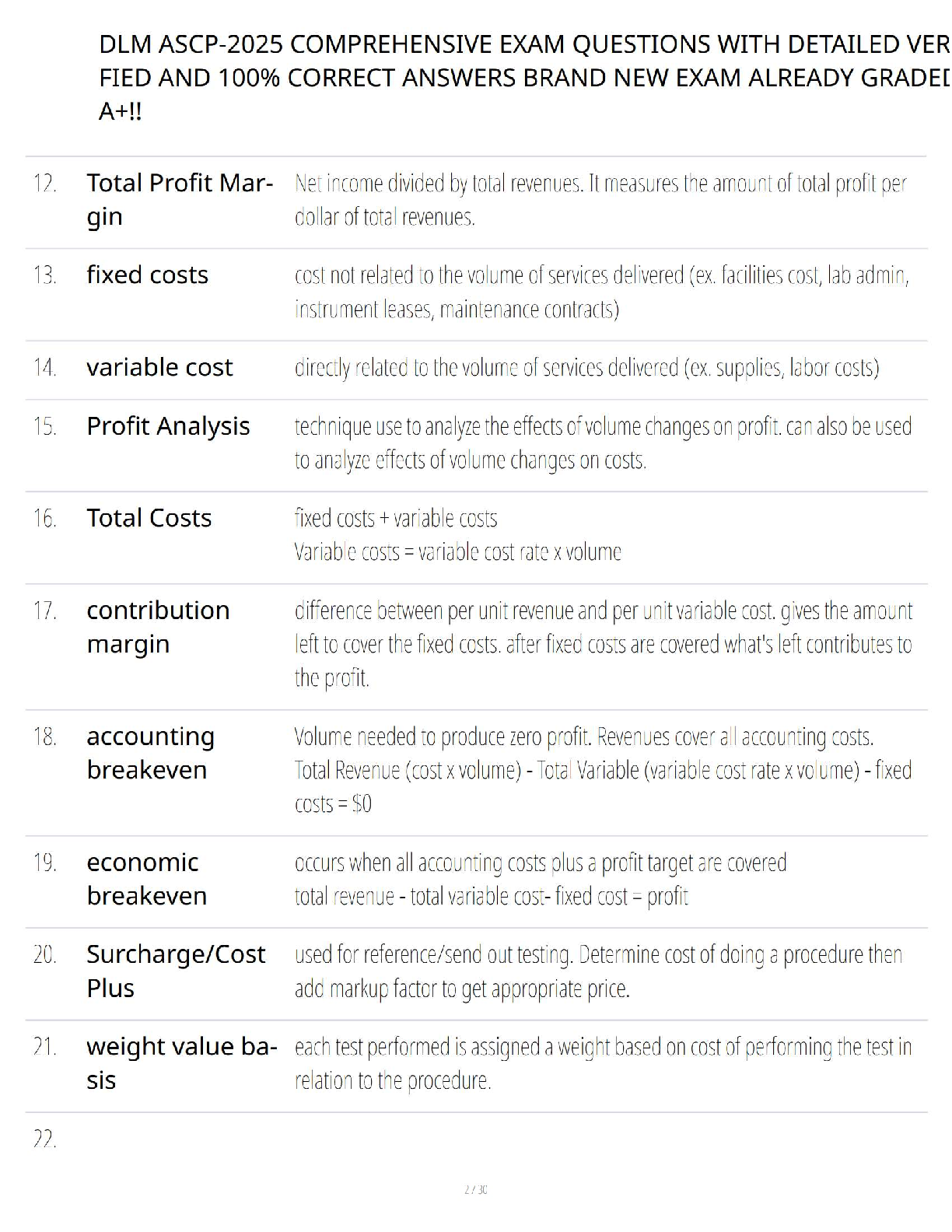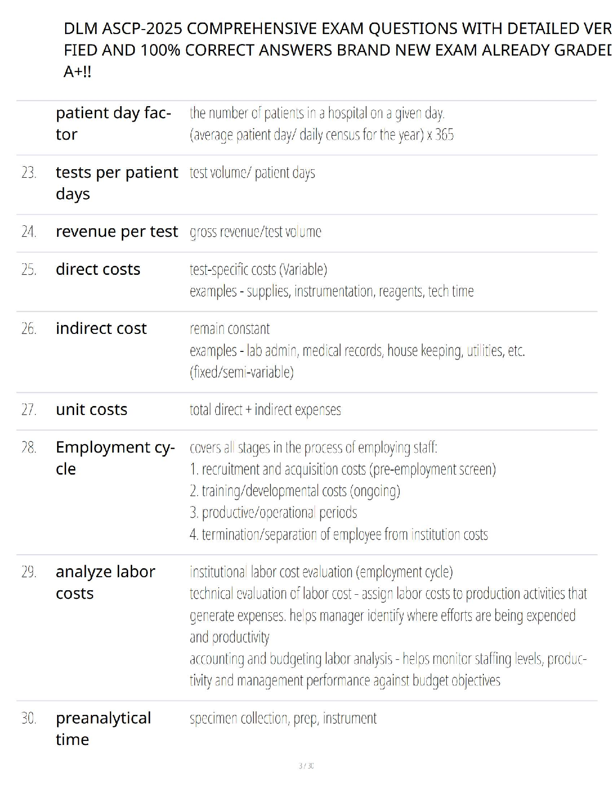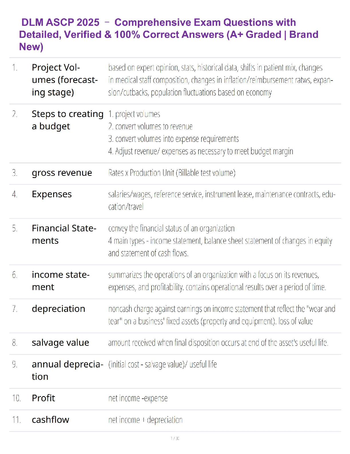 Master the DLM ASCP 2025 exam with our expertly compiled test bank. This premium study guide provides a full collection of exam-style questions, complete with verified and 100% accurate answers to ensure you're fully prepared. Dive deep into essential laboratory management topics, including financial planning, budgeting, revenue analysis, and more. Achieve an A+ grade and secure your DLM(ASCP) certification with confidence. Download now and start studying smarter!