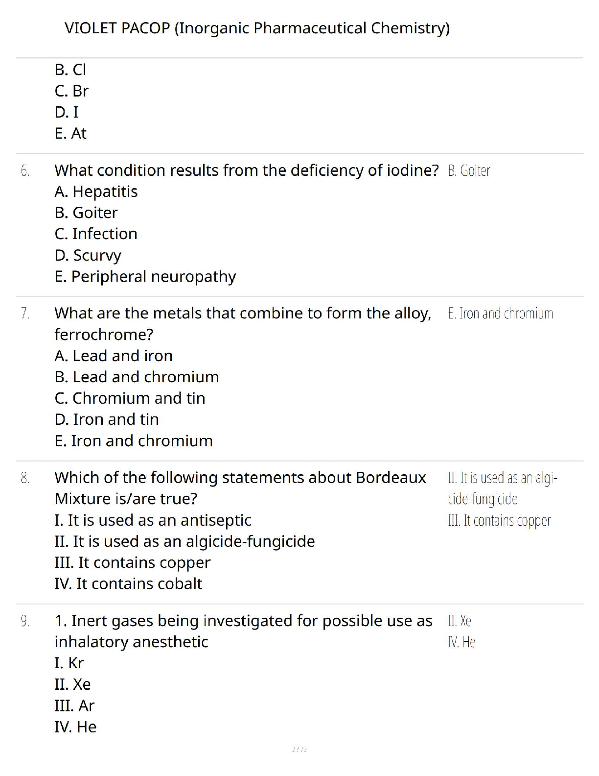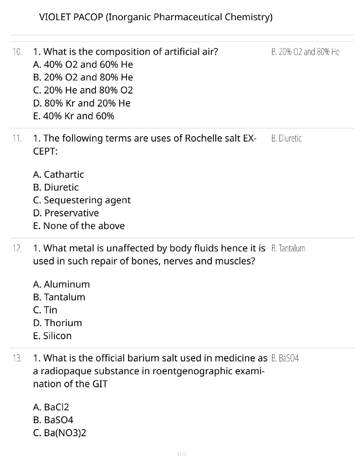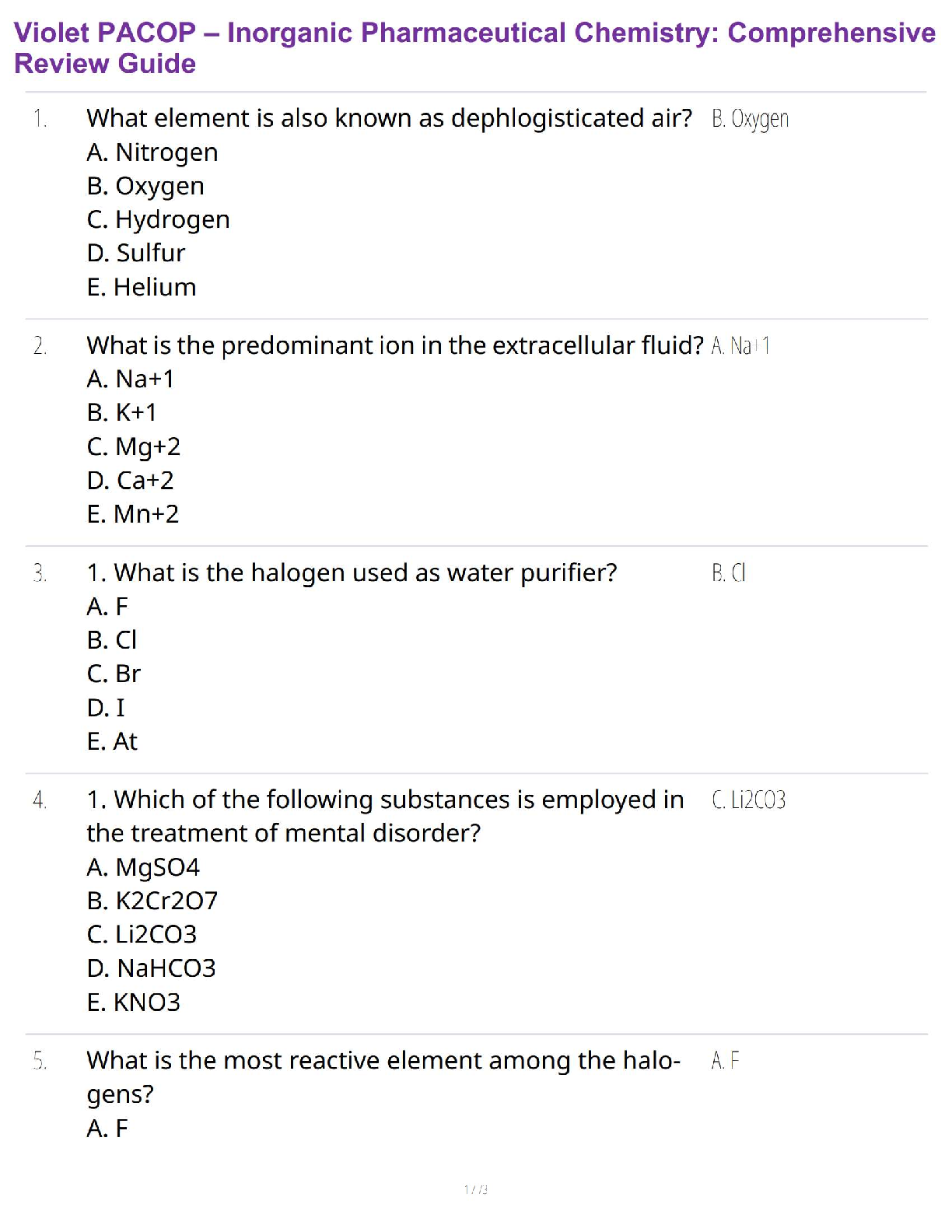 PACOP Inorganic Pharmaceutical Chemistry (Violet Module) Test Bank | Verified Questions & Answers for Pharmacy Board Exam Prep