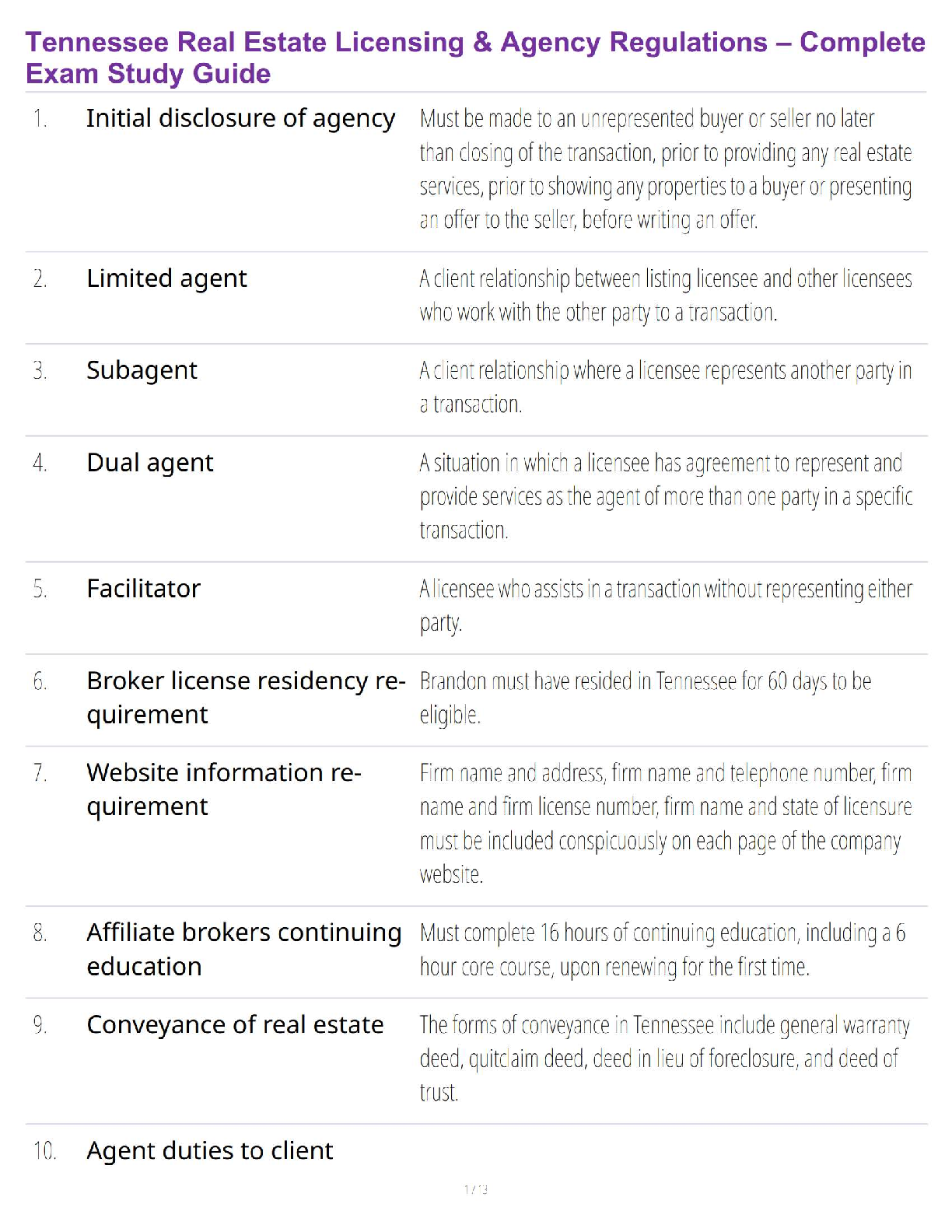 Ace your Tennessee Real Estate Licensing Exam with our ultimate 2025/2026 study guide! This comprehensive resource provides in-depth coverage of all critical topics in Licensing and Agency Regulations, breaking down complex concepts like dual agency, facilitator roles, disclosure requirements, and continuing education into easy-to-understand points. This guide is expertly designed to help you pass confidently on your first try, avoiding costly resits. It's the perfect tool to launch your successful real estate career in Tennessee. Get the complete, updated information you need to succeed!