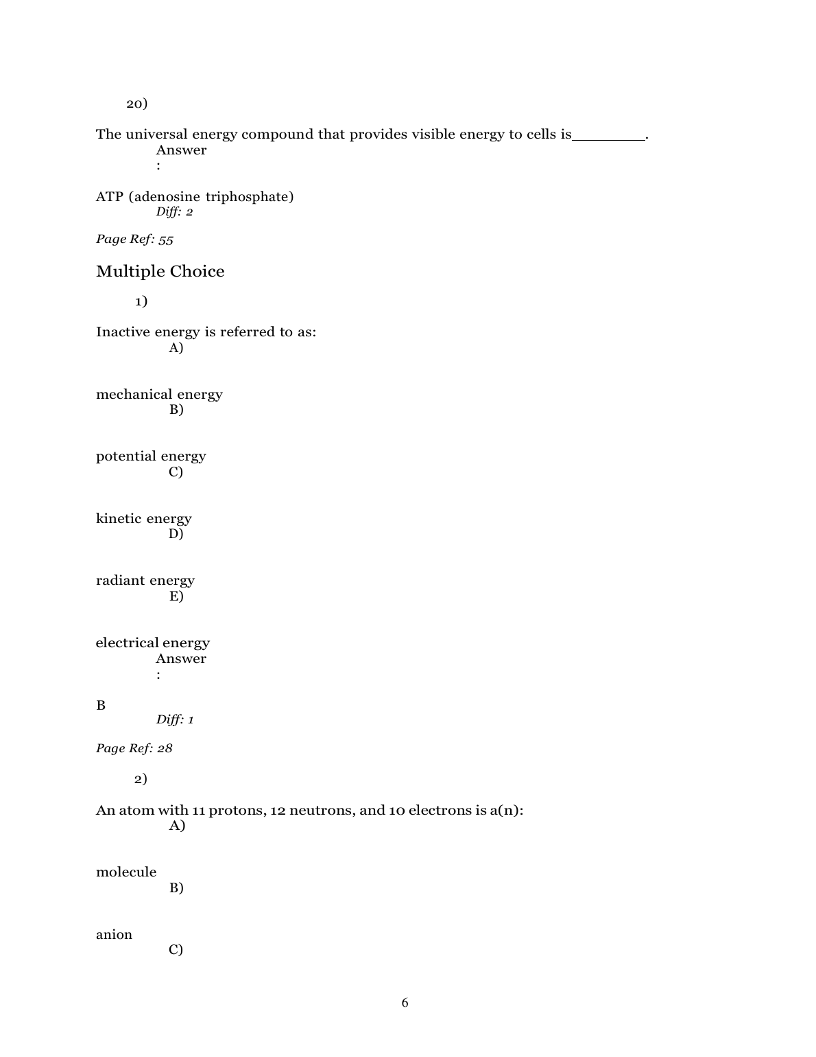TEST BANK FOR Essentials of Anatomy and Physiology, 9TH EDITION (BY Marieb)