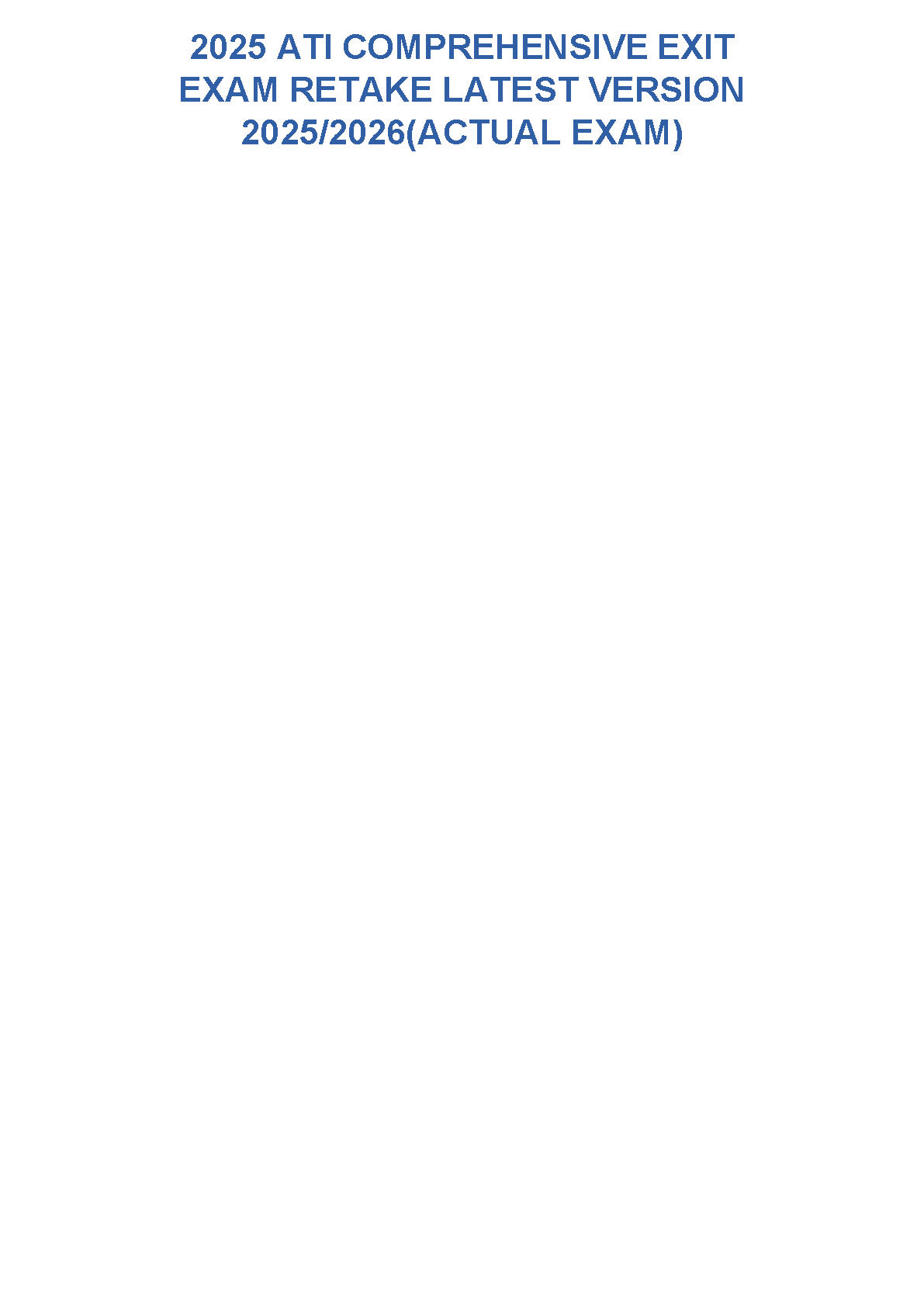 Pass the ATI Comprehensive Exit Exam 2025/2026 on Your First Try: Latest Retake Version with Actual Questions & Answers by Assessment Technologies Institute (ATI)