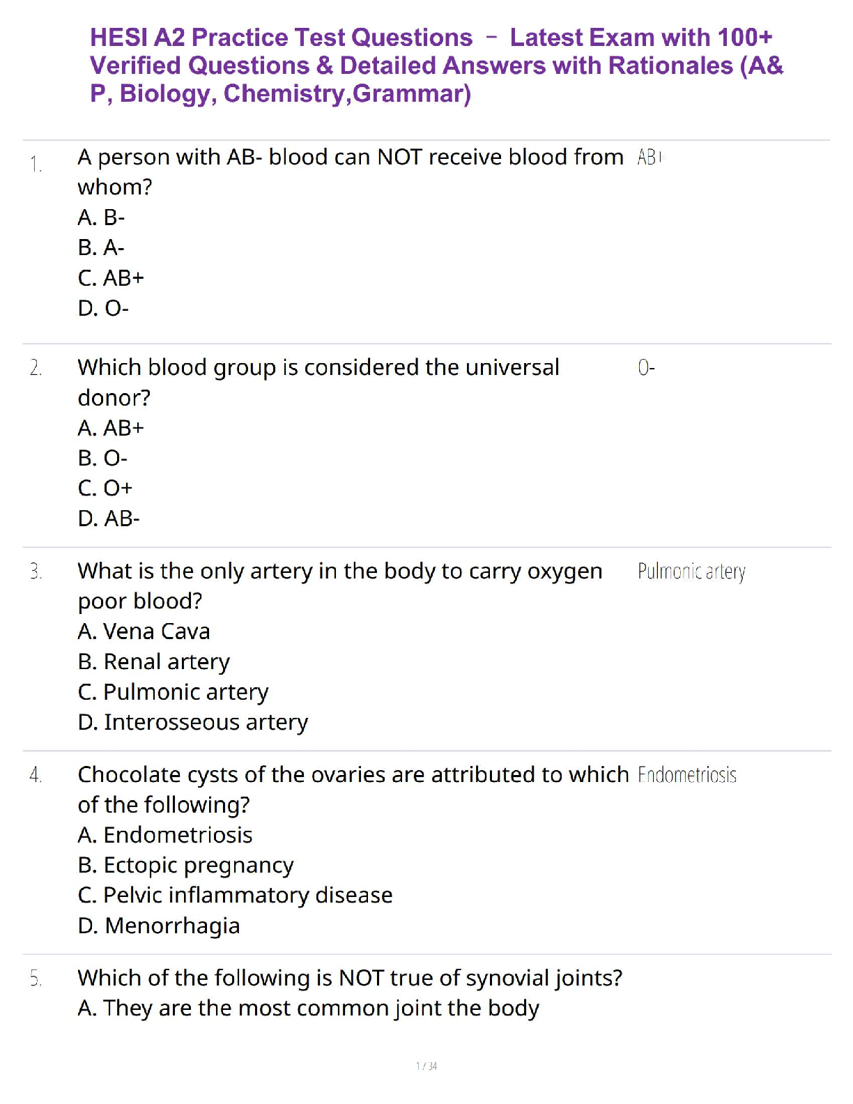Prepare to ace your HESI A2 entrance exam with our latest and most comprehensive test bank for the 2025/2026 academic year. This guide features over 100 meticulously verified practice questions, each accompanied by detailed answers and clear rationales. Master key concepts across all essential sections, including Anatomy & Physiology (A&P), Biology, Chemistry, and Grammar. This study resource is expertly designed to mirror the actual exam, giving you the confidence and knowledge needed to pass on your first attempt and secure your spot in nursing school.