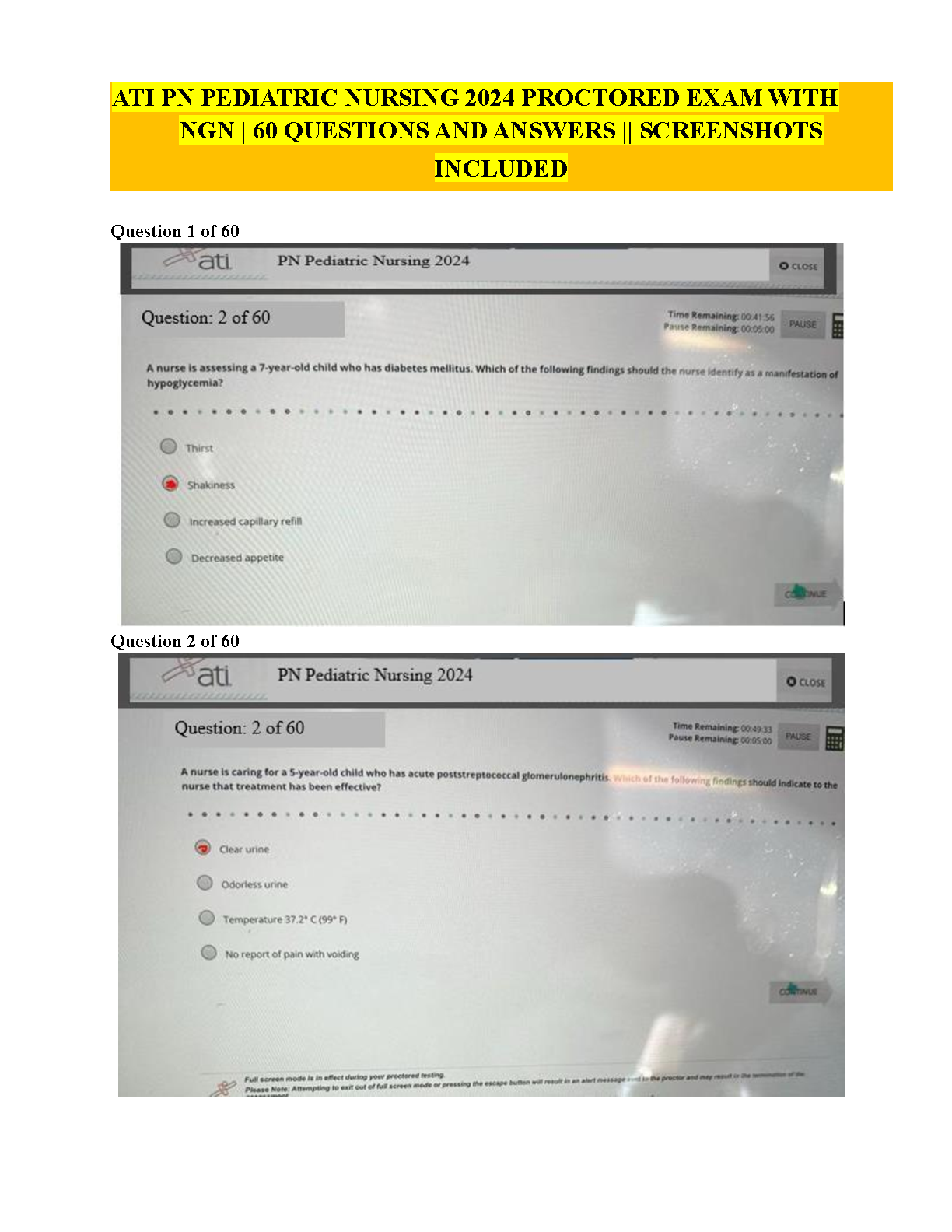 ATI PN Pediatric Nursing 2024 Proctored Exam Test Bank | Complete NGN Questions and Answers