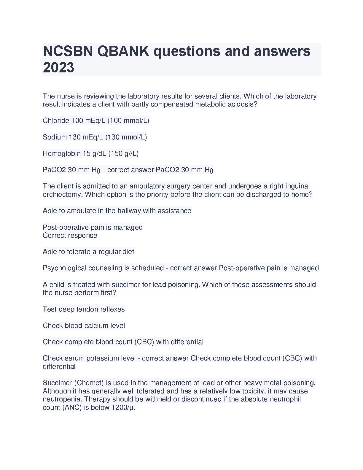 NCSBN NCLEX QBank 2023: Official Test Bank with Questions and Verified Answers