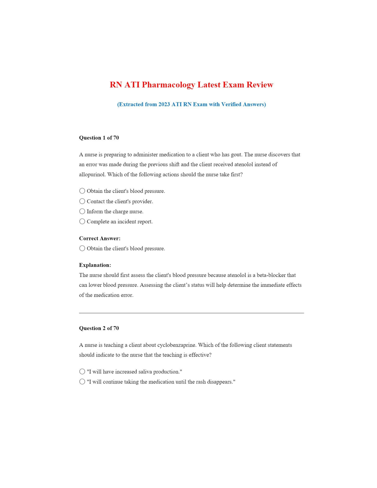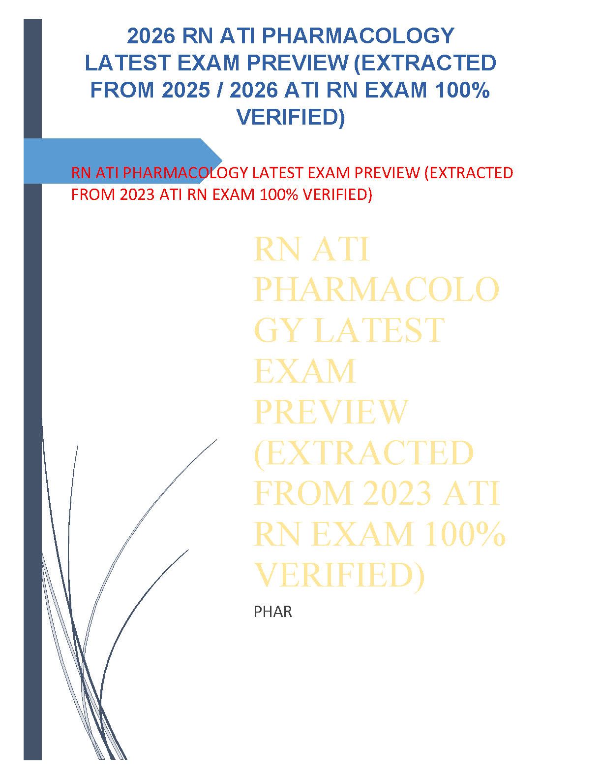 Ace your ATI RN Pharmacology exam on the first attempt with our latest 2025-2026 test bank. This comprehensive resource features a collection of 100% verified questions and detailed, accurate answers directly extracted from recent exams. It's the perfect study guide to familiarize yourself with the exam format, master critical pharmacology concepts, and build the confidence needed to excel. Avoid the stress of resits and take a confident step forward in your nursing journey.