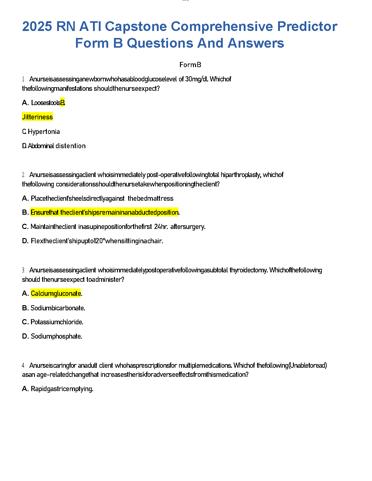 Latest 2025/2026 RN ATI Capstone Comprehensive Predictor Form B Test Bank | Questions & Correct Answers for First-Attempt Success