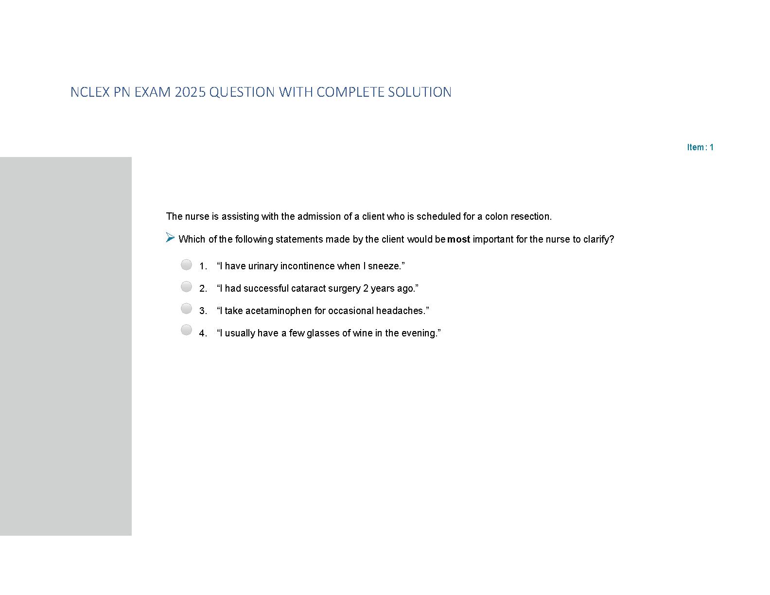 Ace your 2025 NCLEX-PN licensure exam on the very first try! This comprehensive resource, updated for the 2025/2026 academic year, provides a full bank of up-to-date practice questions, each paired with a complete, detailed solution. Stop worrying about resits and start your nursing career with confidence. Our guide is expertly designed to cover all essential topics and ensure you're fully prepared for exam day success.