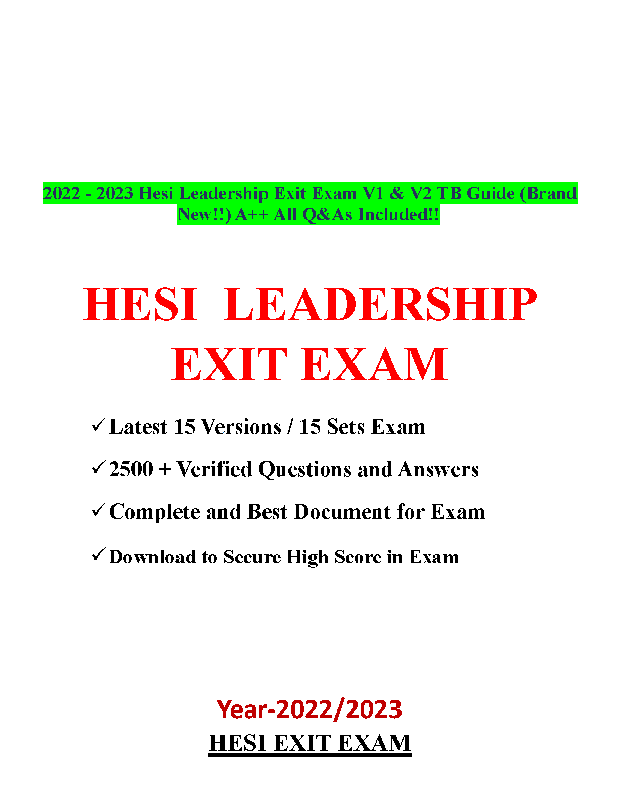 HESI Leadership Exit Exam Test Bank 2025-2026: Comprehensive Q&A Guide with 15 Versions to Guarantee Your A++ Grade