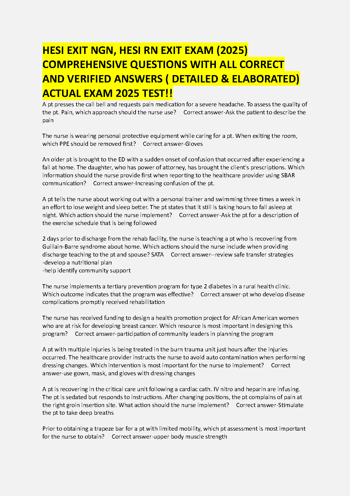 HESI RN Exit NGN Test Bank 2025: Complete Questions & Verified Answers for First-Attempt Success (2025/2026 Edition)