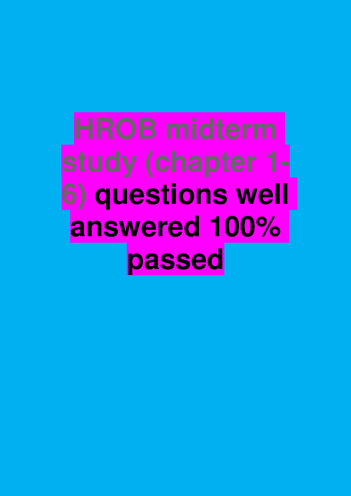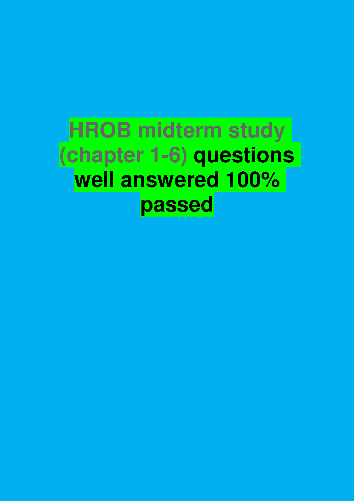 Unlock exam success with the official Test Bank for HROB, 7th Edition by Robert N. Lussier and Christopher F. Achua. This essential resource covers all the material for your midterm exam from chapters 1 through 6. It features a comprehensive collection of practice questions and detailed, accurate answers that are designed to help you master the core concepts of Human Resources and Organizational Behavior. Prepare effectively, boost your confidence, and pass your midterm on the first attempt with this indispensable study guide.