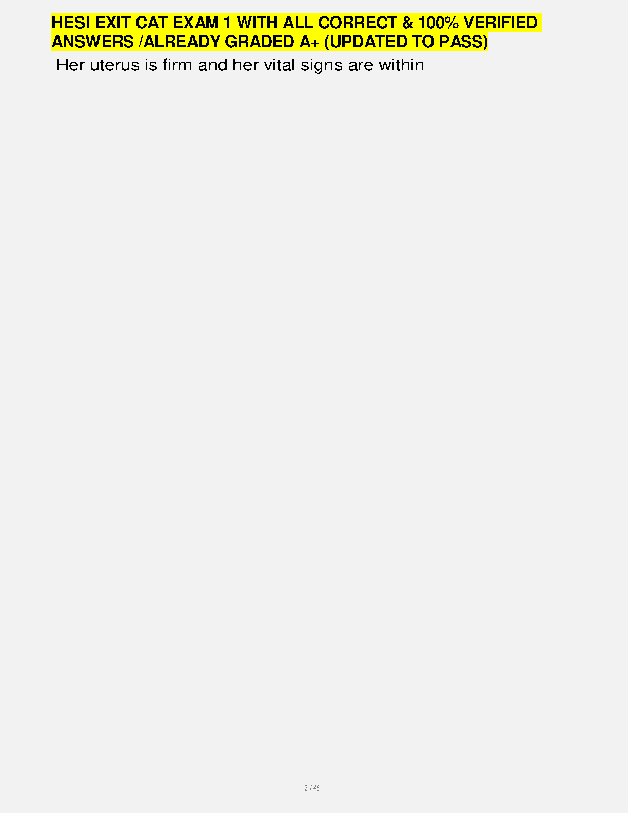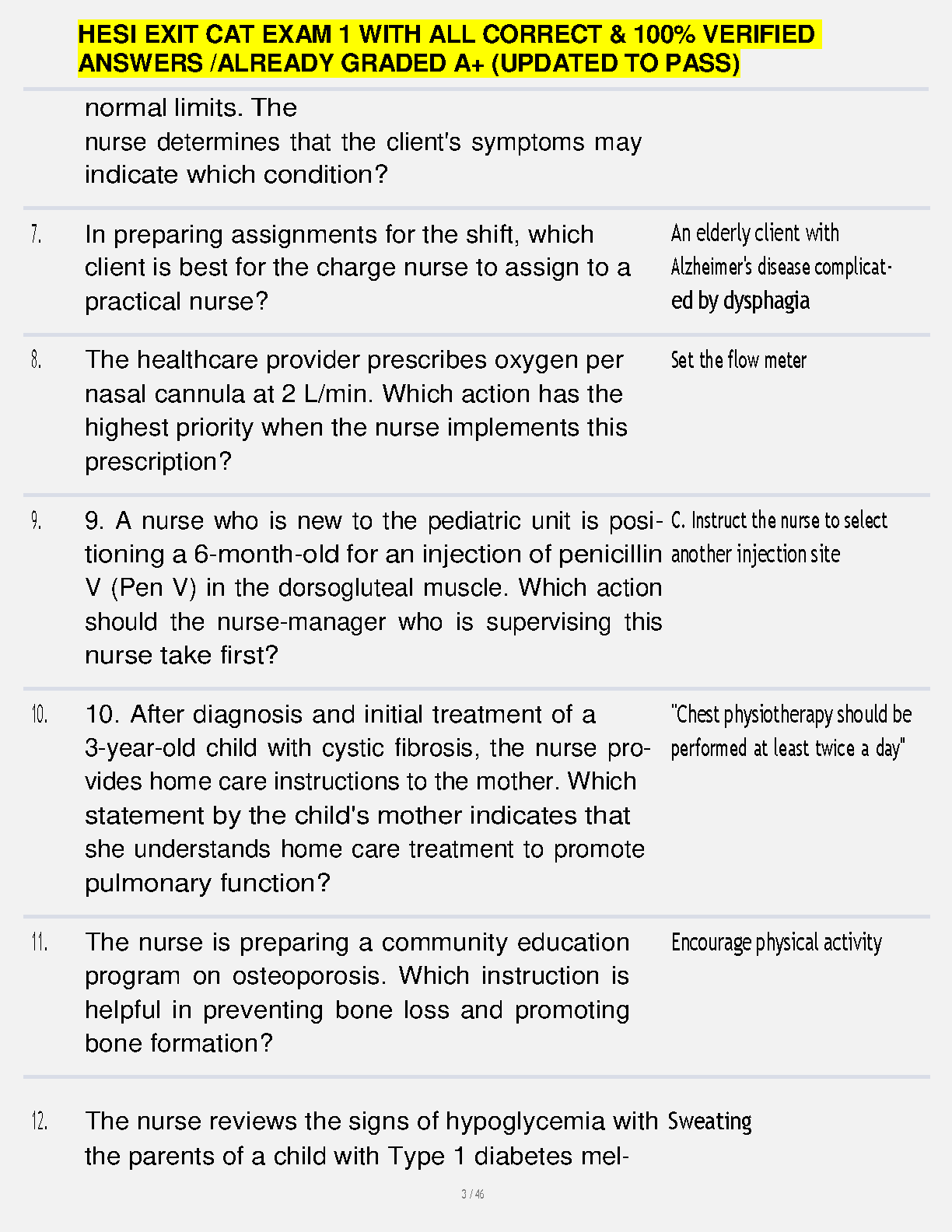HESI Exit CAT Exam 1 Test Bank | 2024/2025 Edition | Complete Q&A for Guaranteed Pass