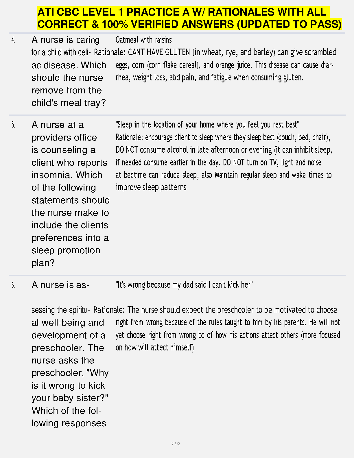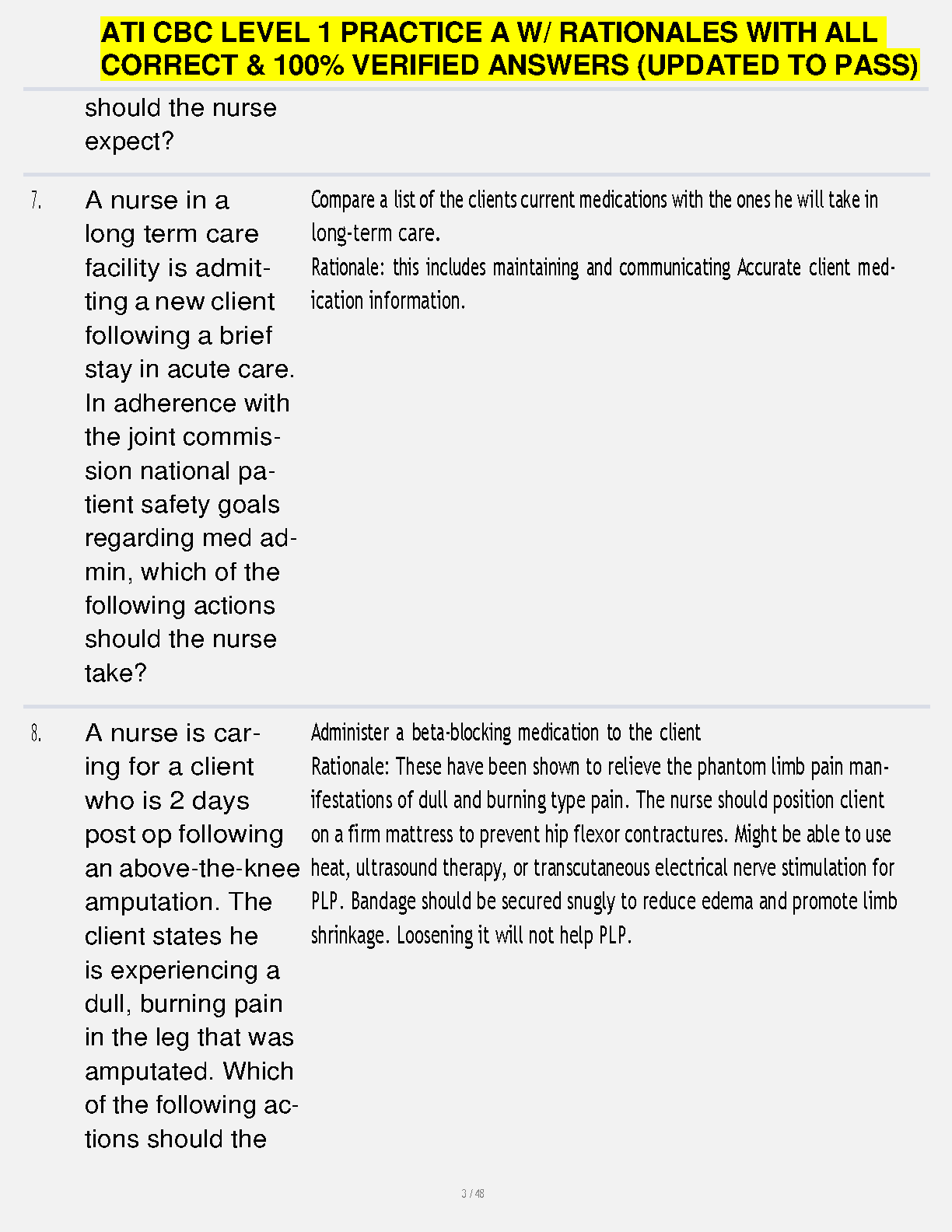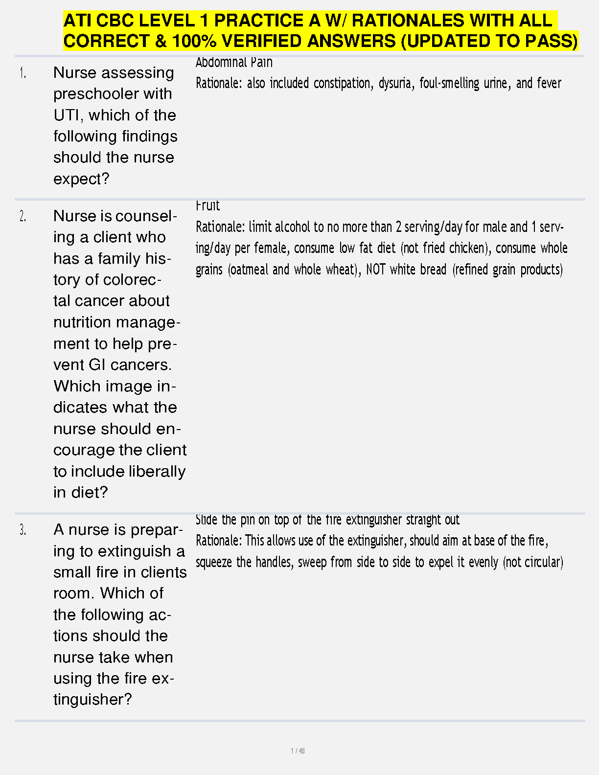 ATI CBC Level 1 Practice A Test Bank | Questions, Answers & Detailed Rationales for Exam Success