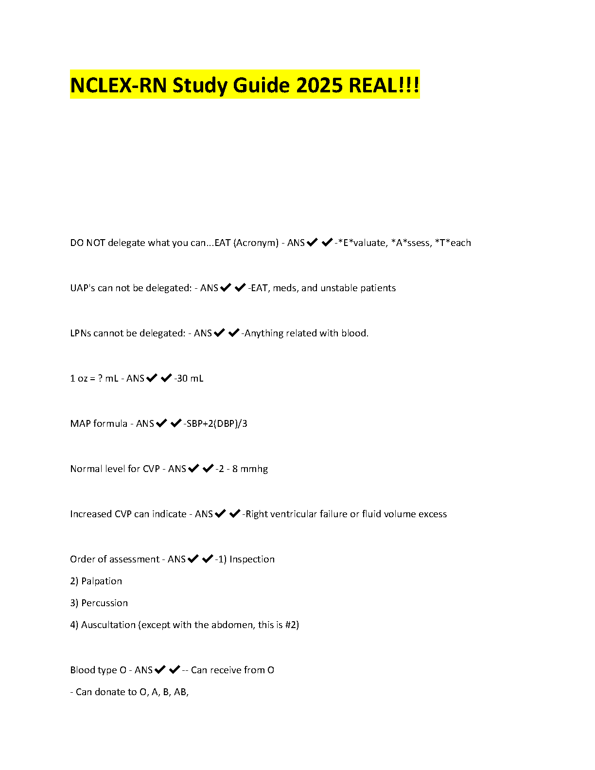 Secure your nursing license with confidence using our newly updated 2025-2026 study guide, expertly crafted to help you pass the NCLEX-RN on your very first try. This resource condenses essential, high-yield information into a clear and concise format, covering must-know topics such as delegation principles (EAT acronym), vital formulas (MAP), critical lab values (CVP), and the correct order of physical assessment. Stop drowning in textbooks and focus on the core content you need to succeed. This is the ultimate tool to avoid resits and launch your nursing career. Download now and ace your exam!