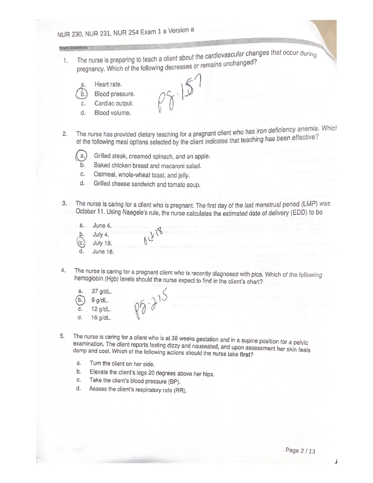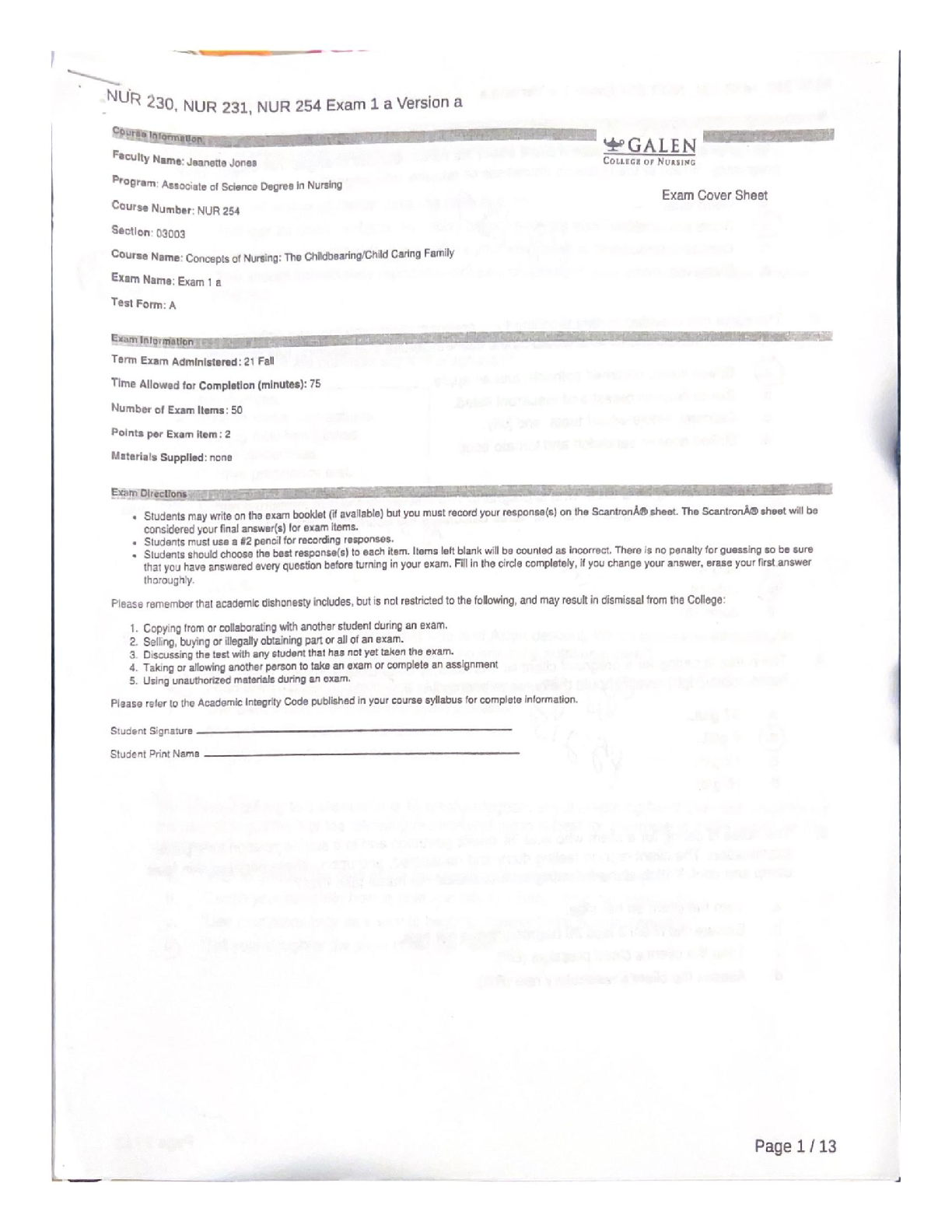 NUR 254 Exam 1 Test Bank | Concepts of Nursing: Childbearing/Child Caring Family | Galen College | Verified Q&A