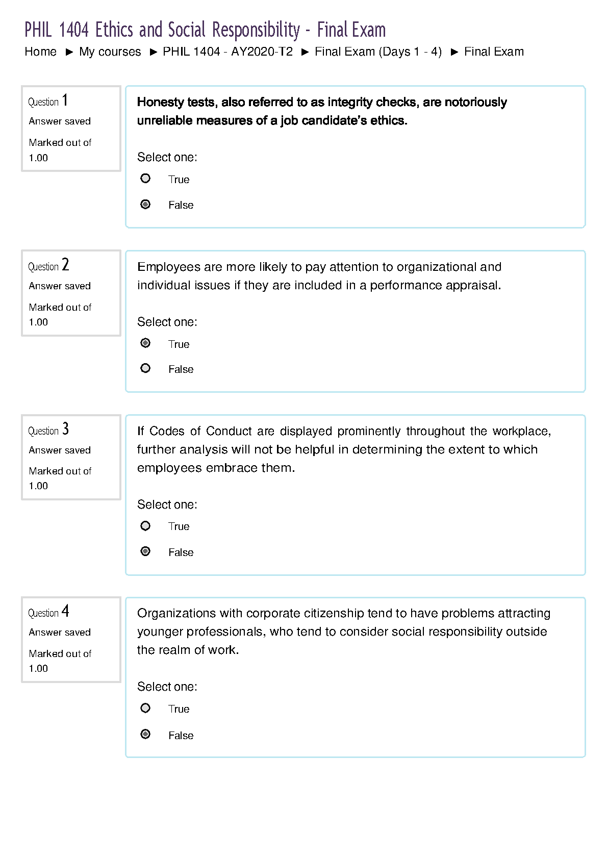 Ace your PHIL 1404 final exam with this comprehensive test bank! This resource contains a verified set of questions and correct answers for the Ethics and Social Responsibility final exam, aligned with the curriculum based on 'Business Ethics' by Stephen M. Byars and Kurt Stanberry. Master key concepts such as corporate citizenship, workplace ethics, integrity, and performance management. This study guide is designed to help you understand the exam format, practice with real questions, and secure a top grade. Download now for instant access and start preparing effectively!