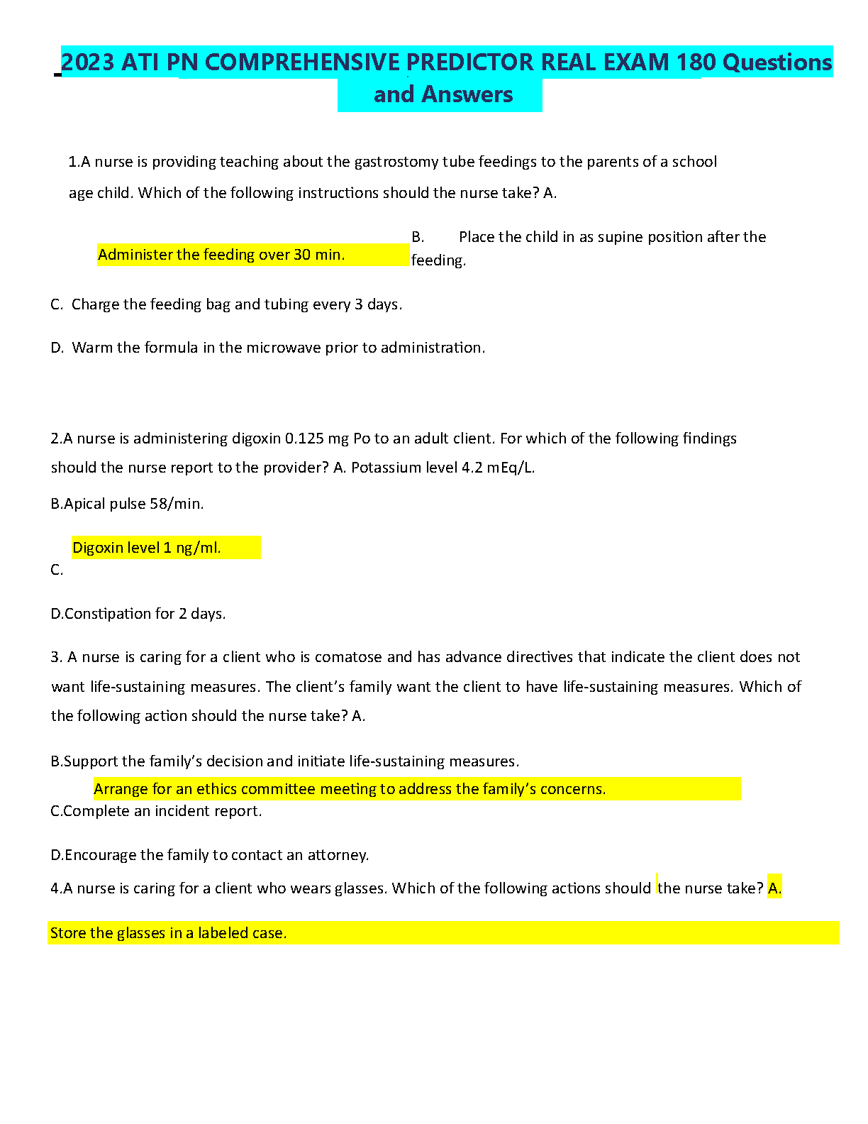 ATI PN Comprehensive Predictor Test Bank 2025/2026: 180 Real Exam Questions and Expert-Verified Answers