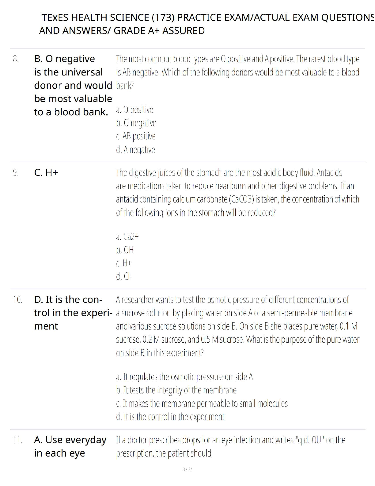 TExES Health Science (173) Test Bank: Verified Questions & Answers for First-Attempt Success