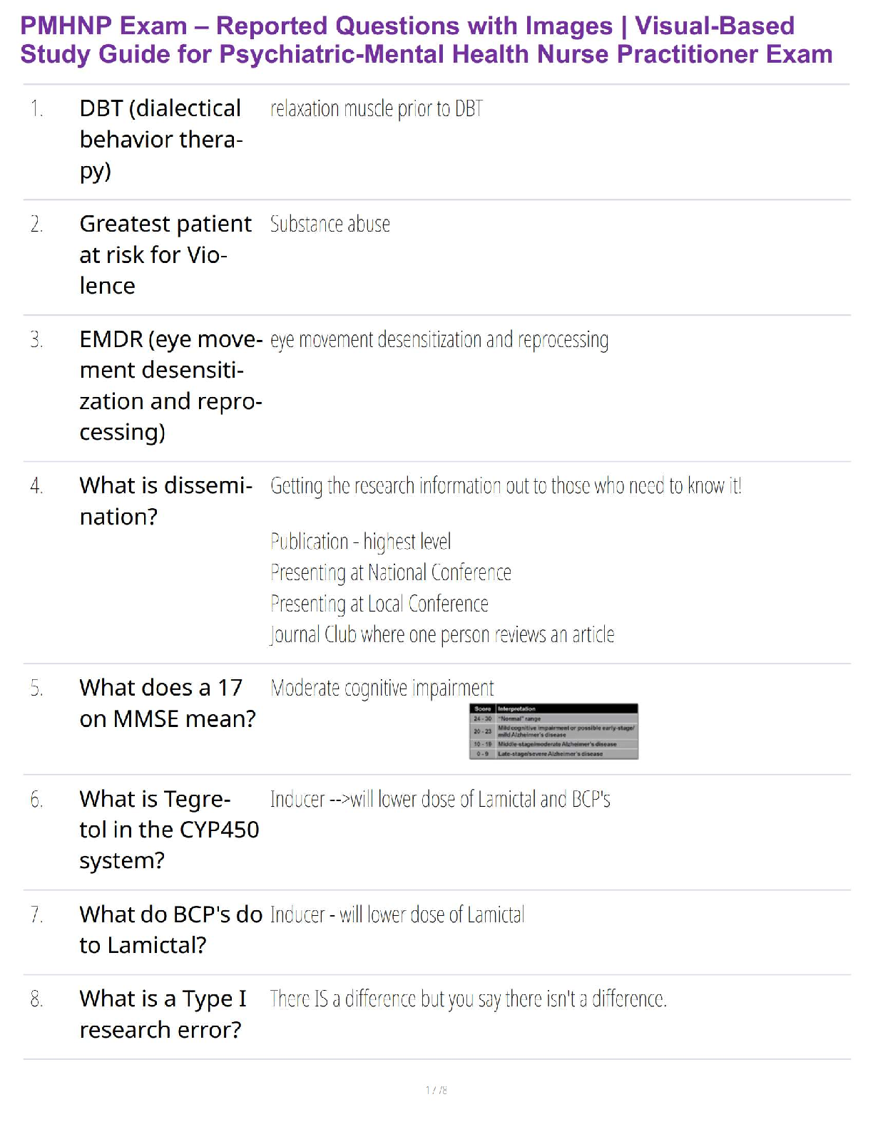 Ace your Psychiatric-Mental Health Nurse Practitioner (PMHNP) certification exam with confidence using our latest 2025/2026 edition test bank. This premium study guide is packed with recently reported, visual-based questions and detailed, expert-verified answers designed to help you pass on your very first try. Our resource covers all essential PMHNP exam topics, including psychotherapy (DBT, EMDR), pharmacology (Tegretol, Lamictal), patient assessment (MMSE), and more. Prepare effectively, avoid costly resits, and take the next step in your nursing career with this indispensable exam preparation tool.