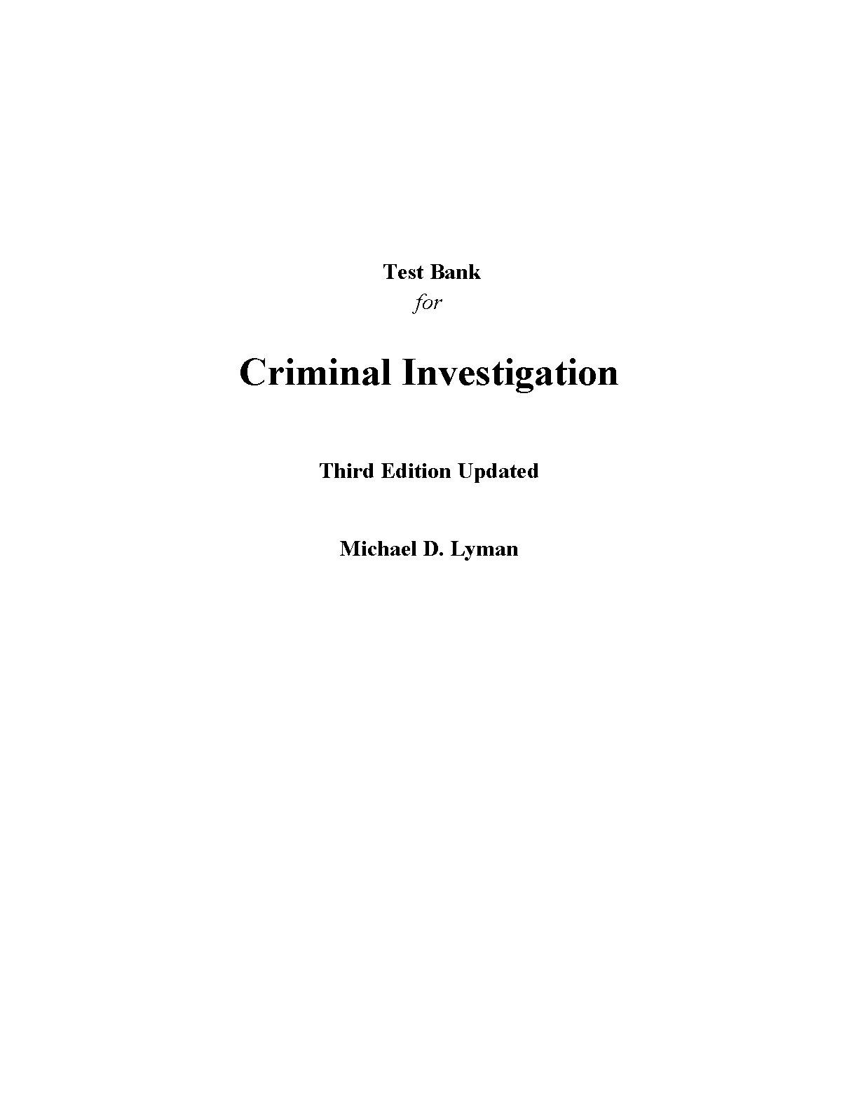 Test Bank for Criminal Investigation, Third Updated Edition by Michael D. Lyman
