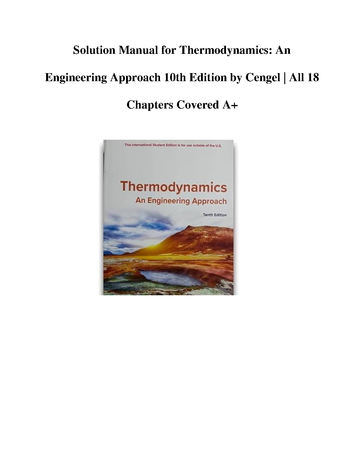 Unlock your potential and achieve top grades with the official Solutions Manual for Thermodynamics: An Engineering Approach, 10th Edition by Çengel, Boles, and Kanoğlu. This comprehensive guide provides detailed, step-by-step solutions for every problem in all 18 chapters of the textbook. Ideal for exam preparation, homework assistance, and mastering core concepts, this manual is the ultimate resource for engineering students aiming for an A+.