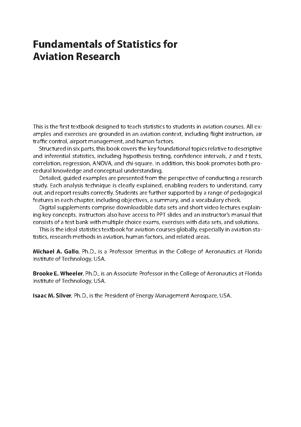 Master Aviation Statistics: Fundamentals of Statistics for Aviation Research, 1st Edition by Michael A. Gallo, Brooke E. Wheeler & Isaac M. Silver | 2025/2026 First Attempt Pass Guide