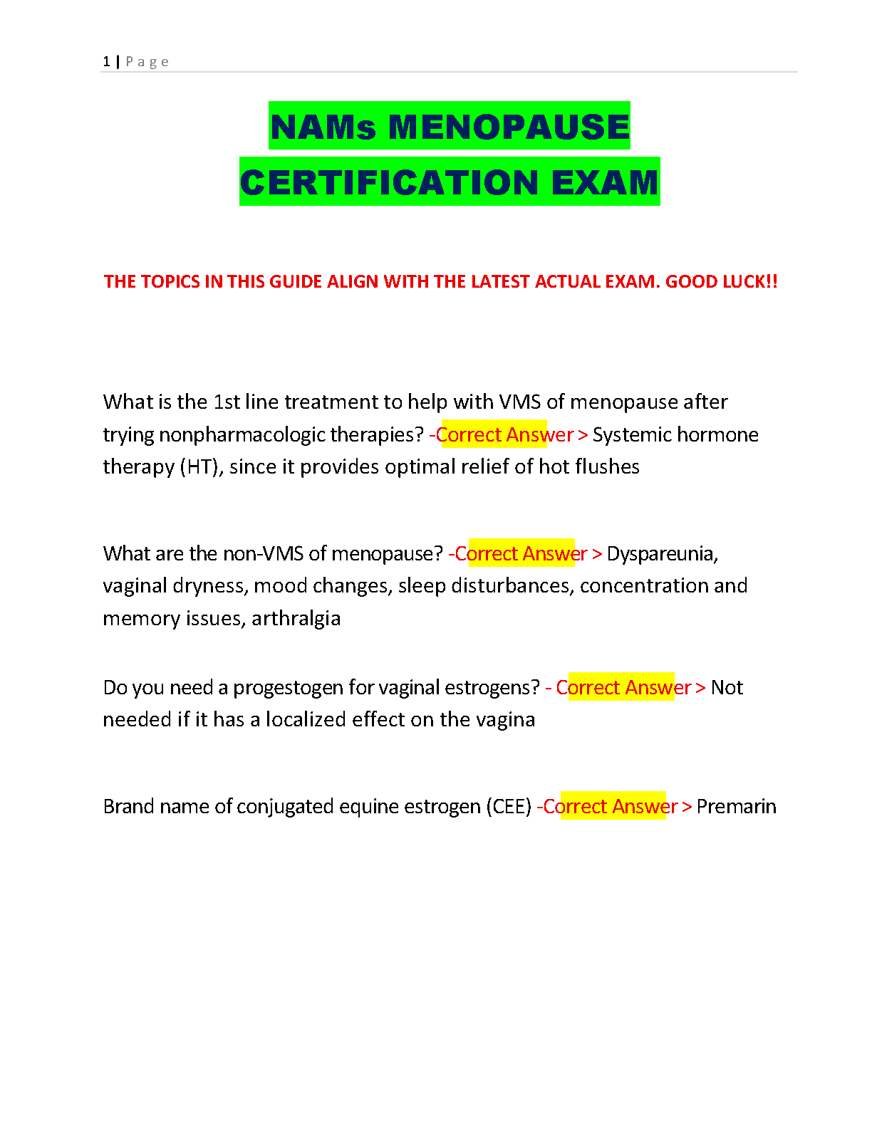 North American Menopause Society (NAMS) Certified Menopause Practitioner (NCMP) Exam Test Bank | Latest Study Guide with Questions and Verified Answers
