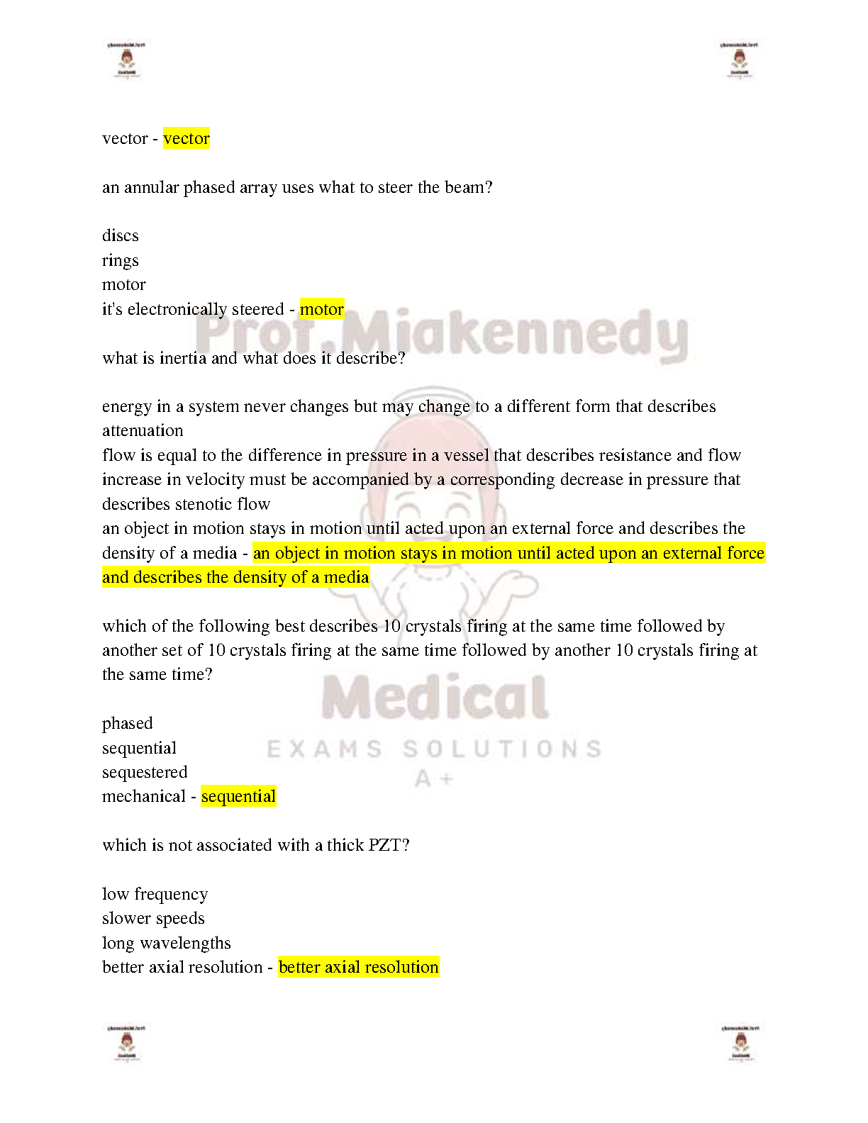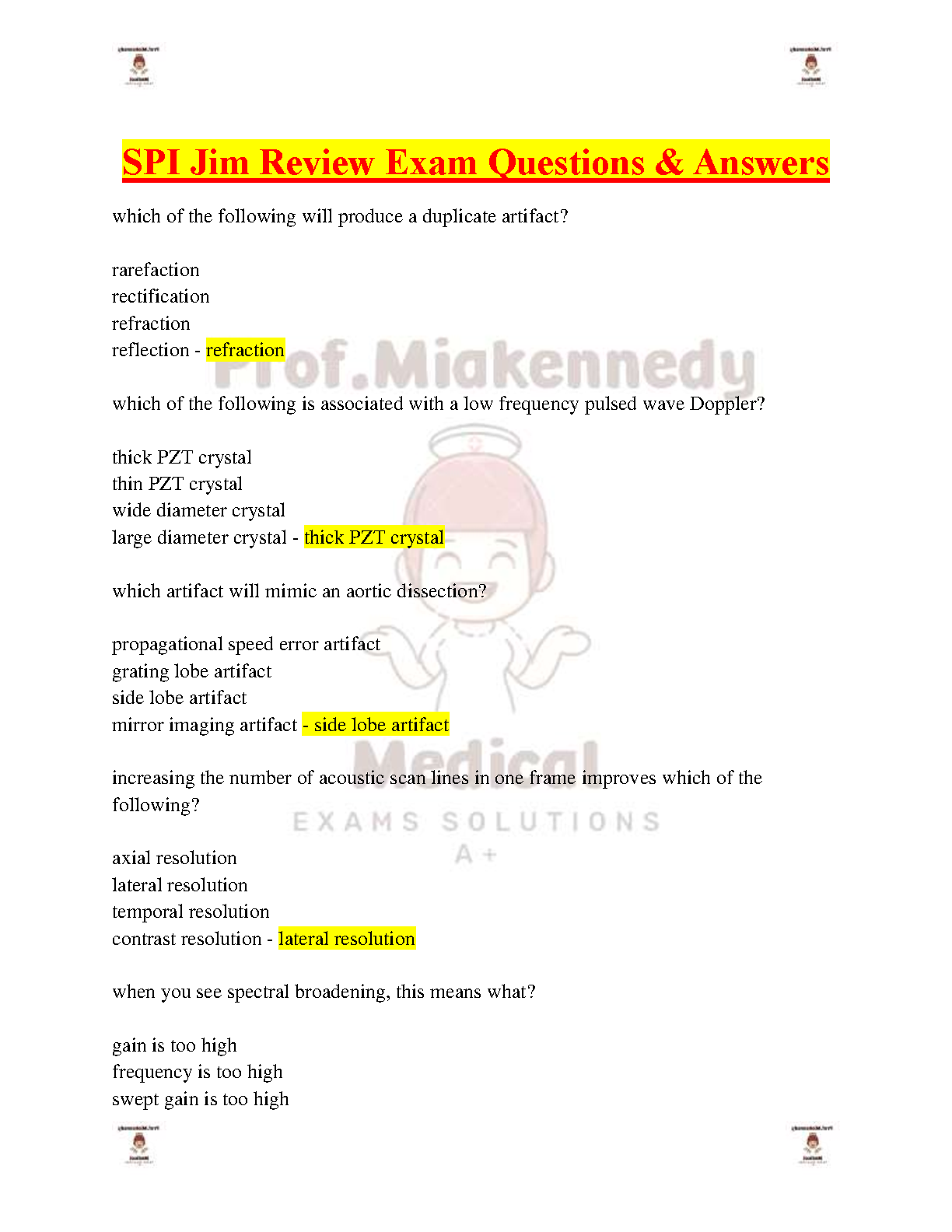 Get ready to ace your ARDMS Sonography Principles and Instrumentation (SPI) board exam with our premier test bank based on the renowned Jim's SPI Review. This essential study guide for the 2025/2026 session is filled with hundreds of authentic exam questions and verified answers, covering all key areas of ultrasound physics. Deepen your understanding of complex topics such as artifacts, Doppler physics, transducers, and image quality. Designed to help you study smarter and pass on your first attempt, this resource is your key to avoiding resits and securing your sonography certification. Download now and start preparing for success!