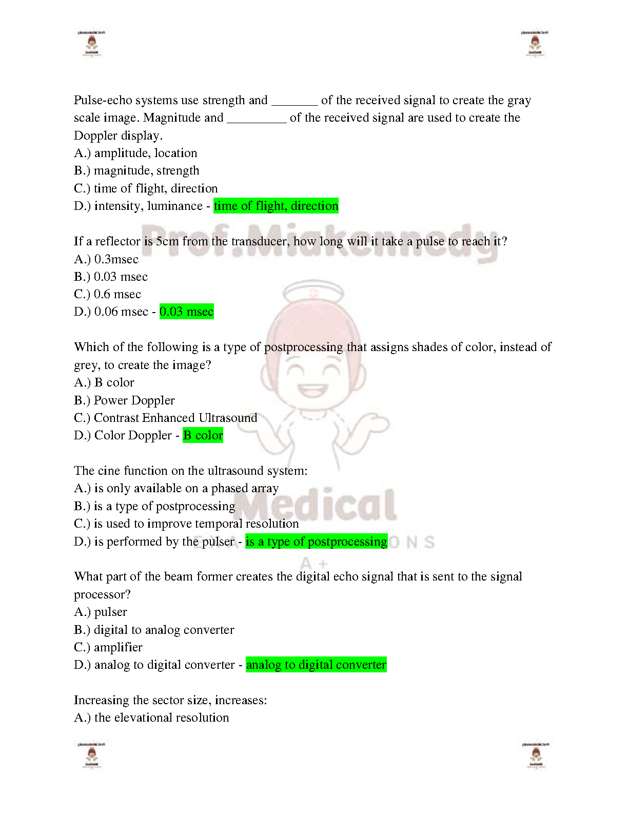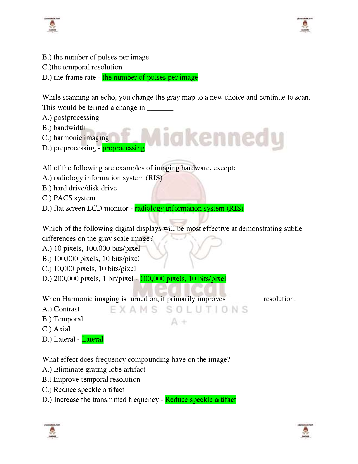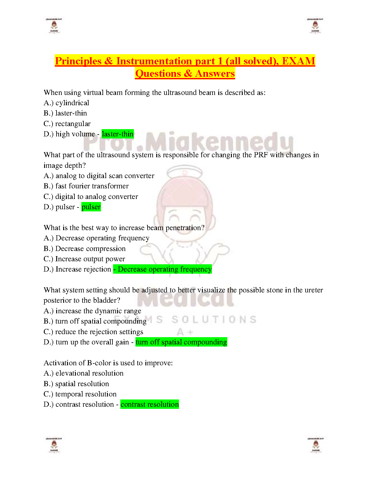 Test Bank for Diagnostic Ultrasound: Principles and Instruments, 10th Edition by Frederick W. Kremkau - Part 1 Exam Questions & Answers