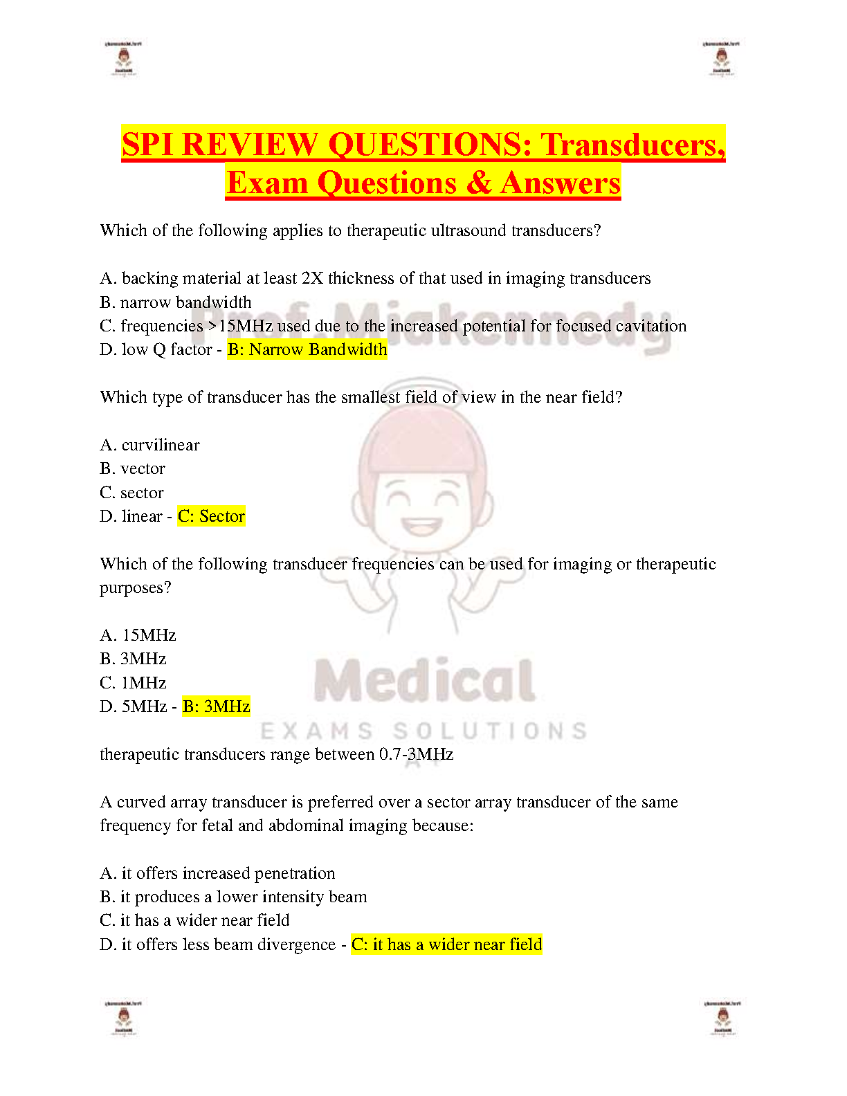 SPI Exam Test Bank: Questions & Answers for Understanding Ultrasound Physics, 5th Edition by Sidney K. Edelman & Steven M. Penny